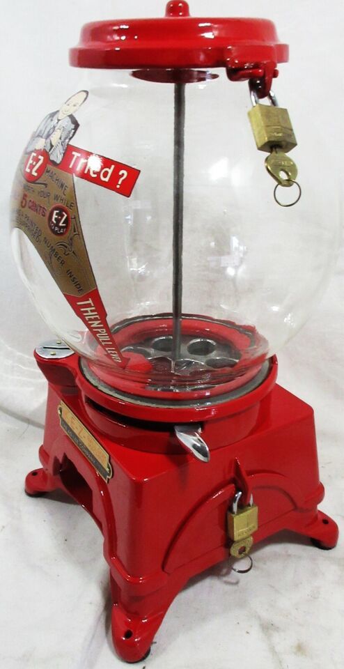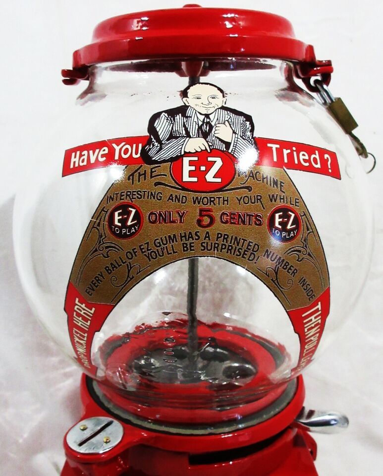 An original five cent AD-LEE E-Z gumball dispenser circa 1908 manufactured by the AD-LEE Novelty Co.