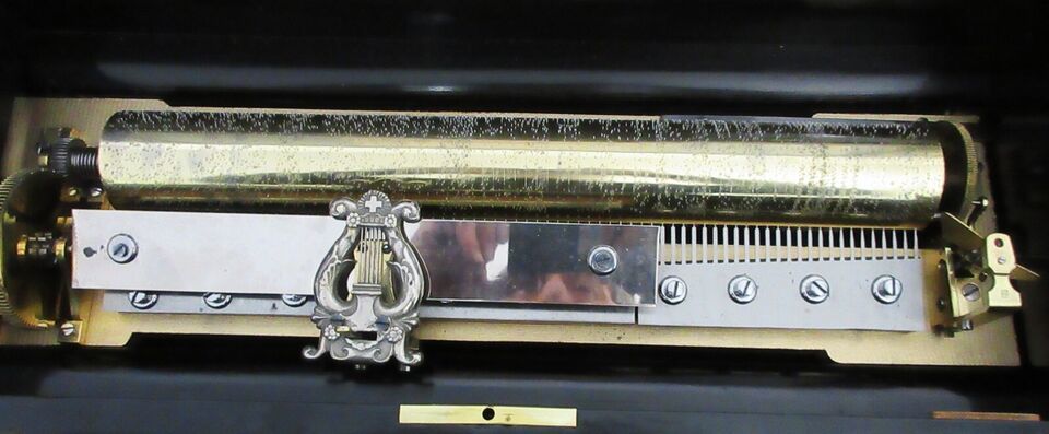 An original Zither Changemend Daids Volonte cylinder music box circa 1876, fully restored.