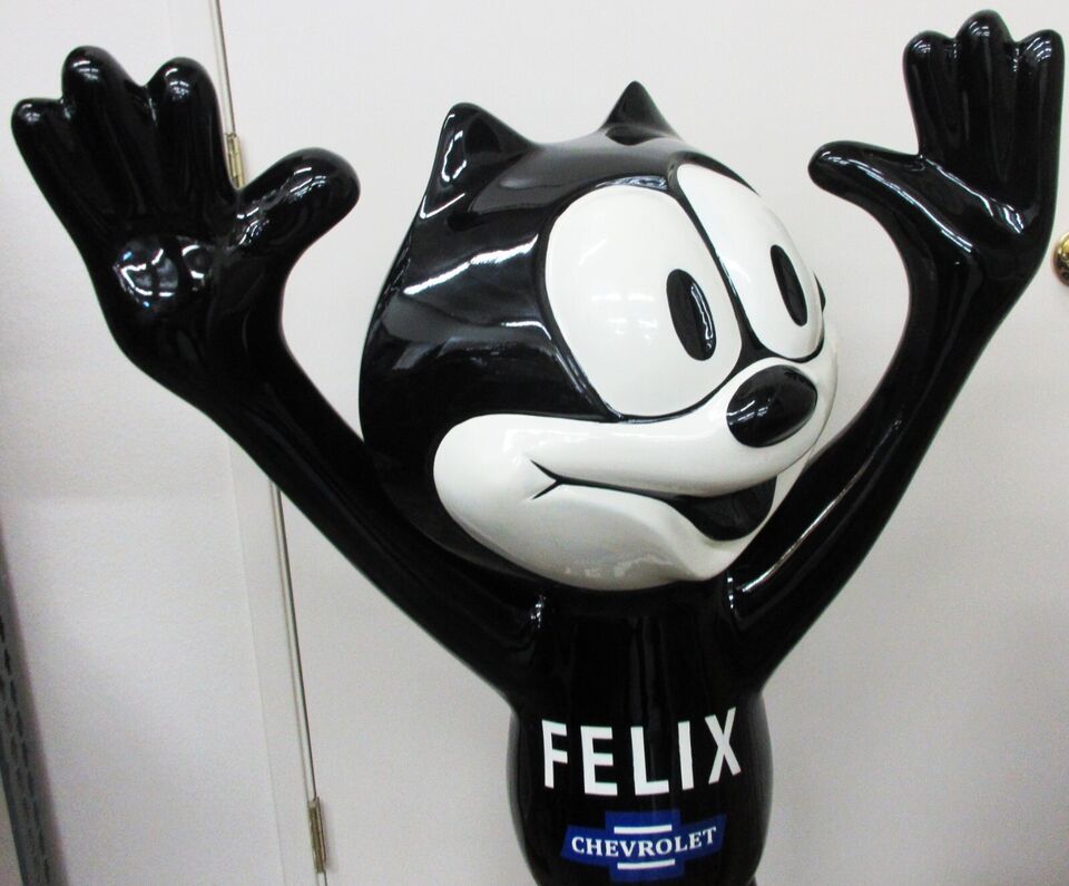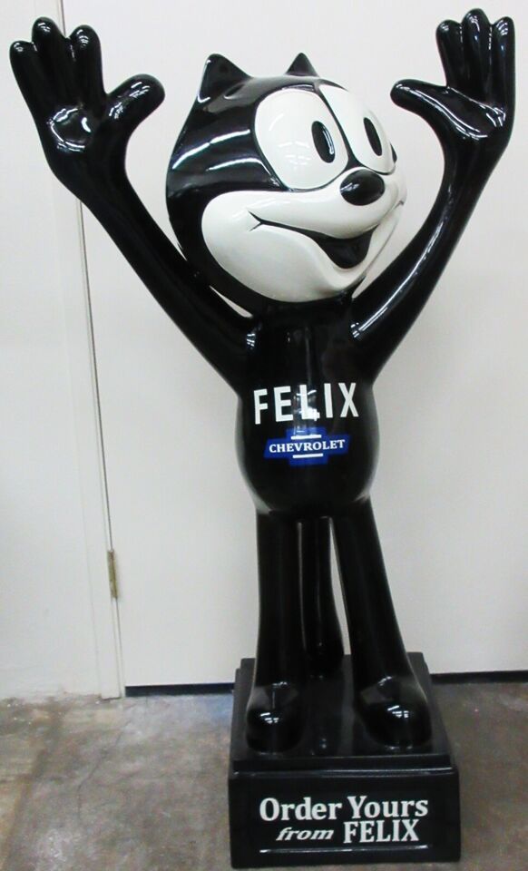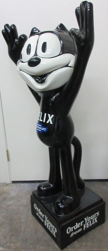 Capture the essence of classic animation with this striking Felix the Cat statue, standing a proud 48 inches tall. The meticulous attention to detail is evident in its black and white color scheme, bringing the whimsical charm of the beloved franchise to life. With a sturdy 12-inch base, this piece is not only a homage to Chevrolet but also a testament to the enduring popularity of Felix the Cat.