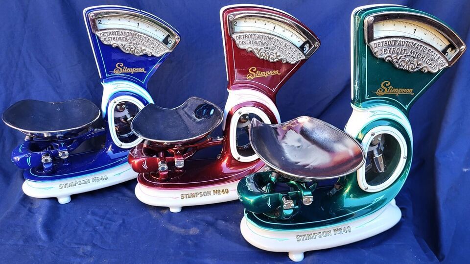 An original fully restored Stimson model #40 by the Detroit Automatic Scale Co., Detroit, Michigan two pound candy scale, circa 1900's. serial # 41870