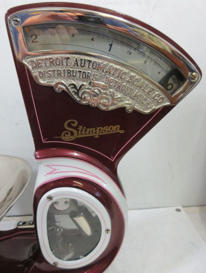 Stimson Detroit Model 40 2 Pound Maroon/White Candy Scale ( Leaner ) circa 1930