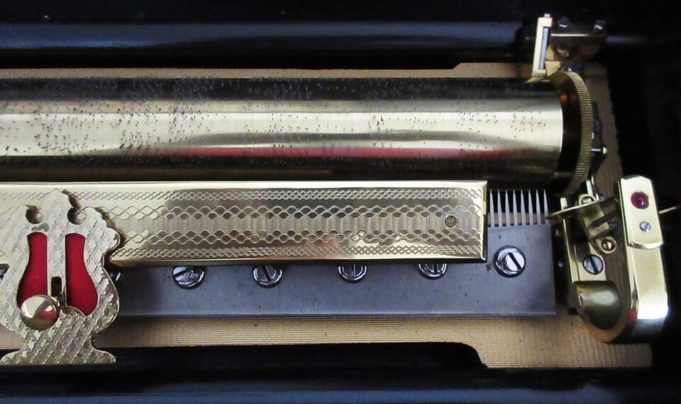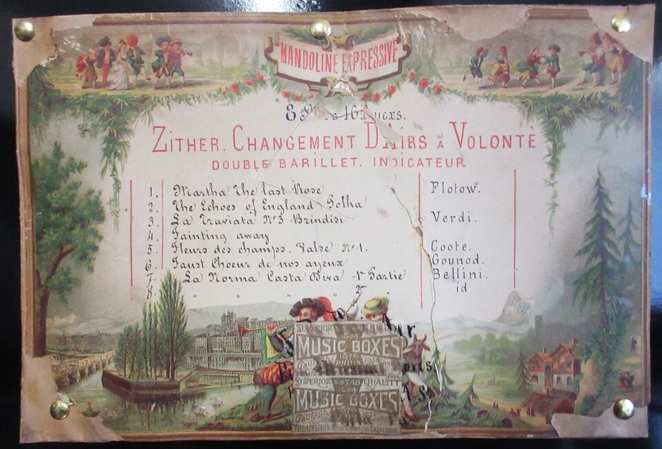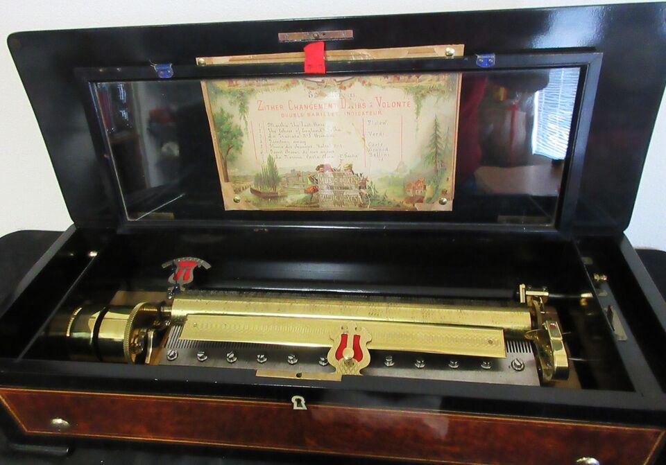 An original Zither Changemend Daids Volonte cylinder music box circa 1876, fully restored.