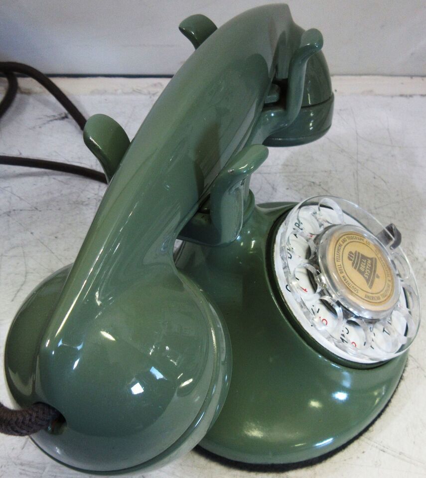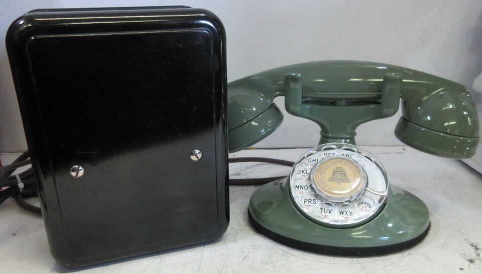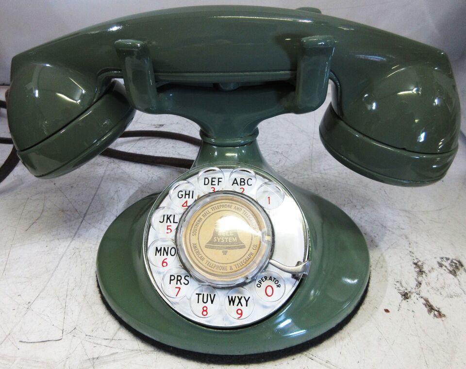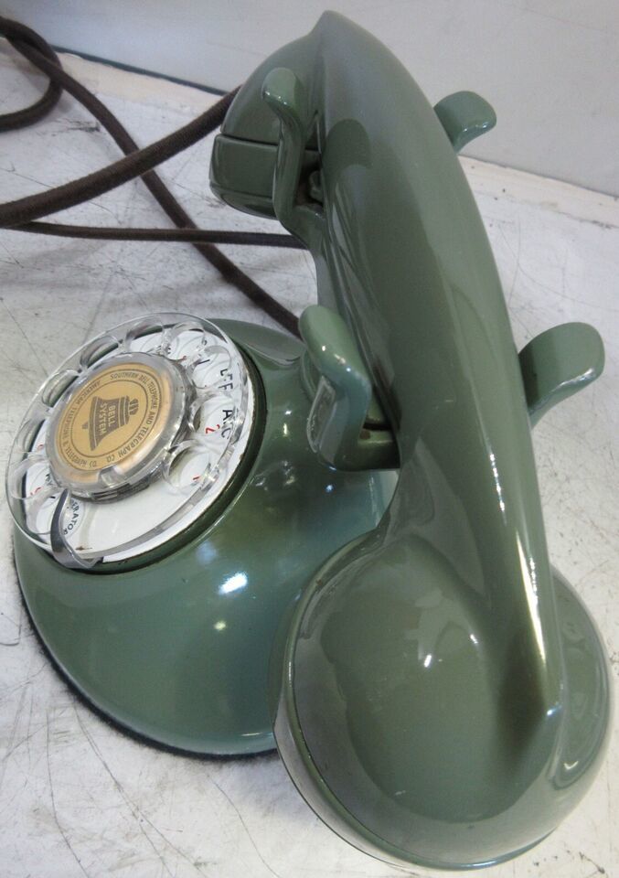 A fully restored original Model #202 green finish table telephone manufactured by the Western Electric Company, Chicago, Illinois circa 1930's.