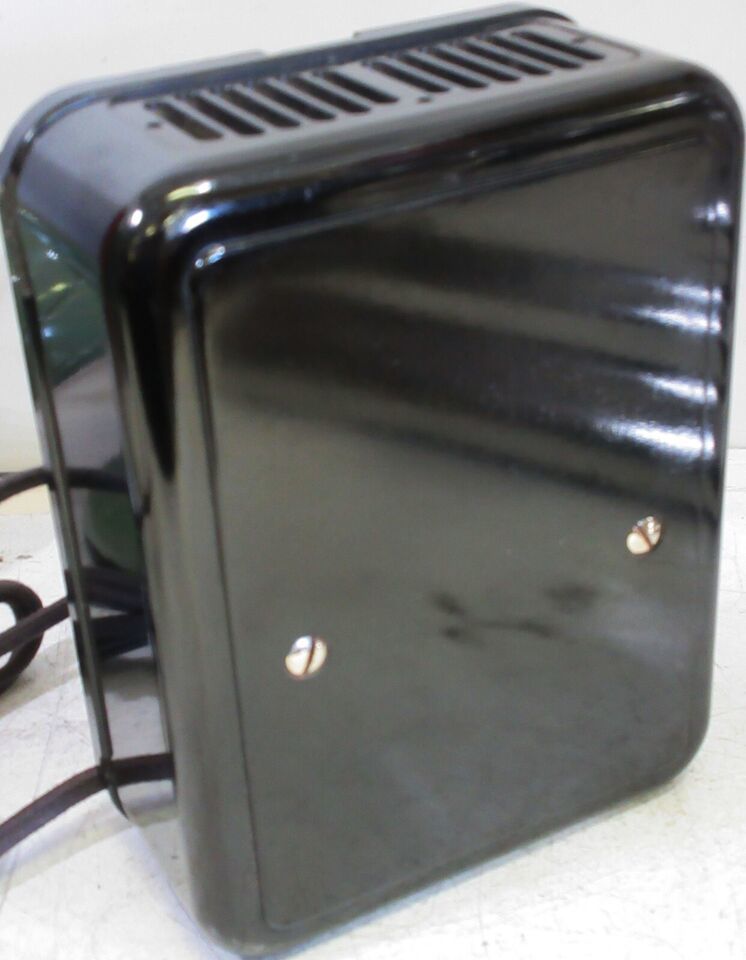 Features green painted metal surfaces, a rotary dial, cloth covered cord, and fully operational.