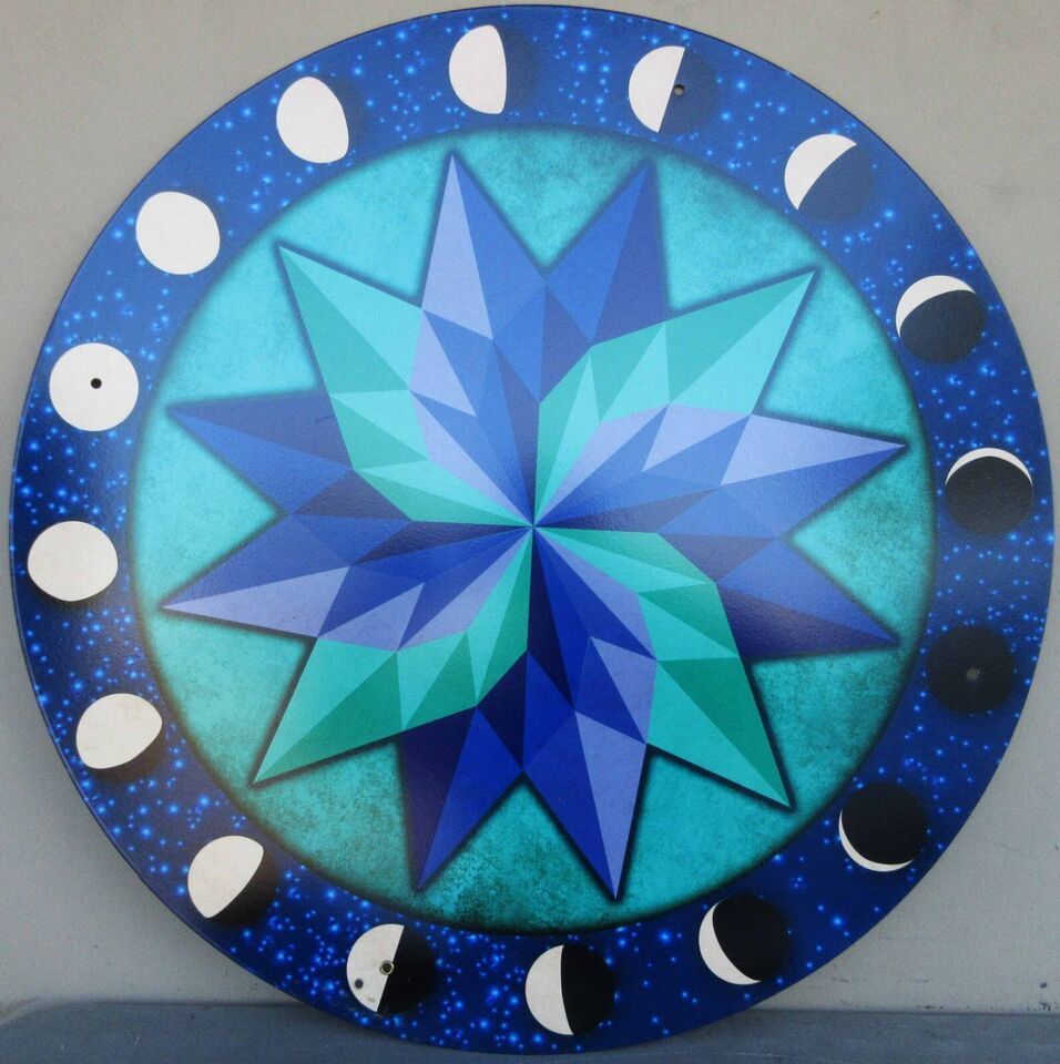 Blue / Green Geometric Round Metal Sign 36" diameter