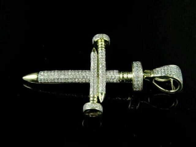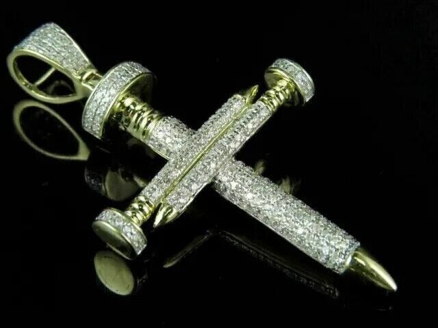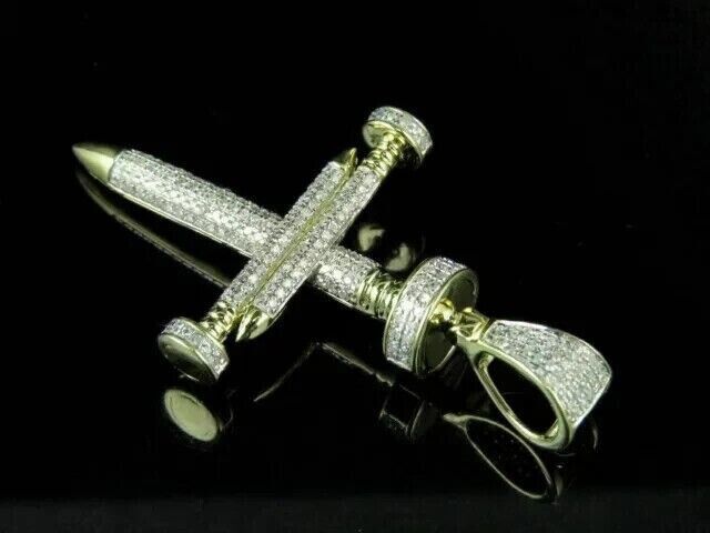 1.20Ct Round Cut Lab Created Diamond Nail Cross Pendant 14k Yellow Gold Plated