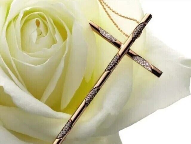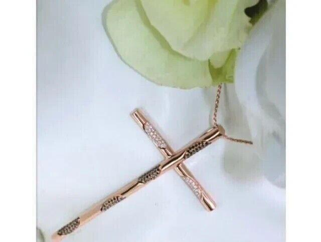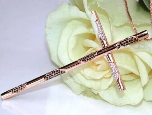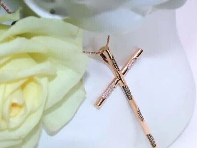 1.20Ct Round Cut Lab Created Black Spinel ''Cross'' Pendant 14k Rose Gold Plated
