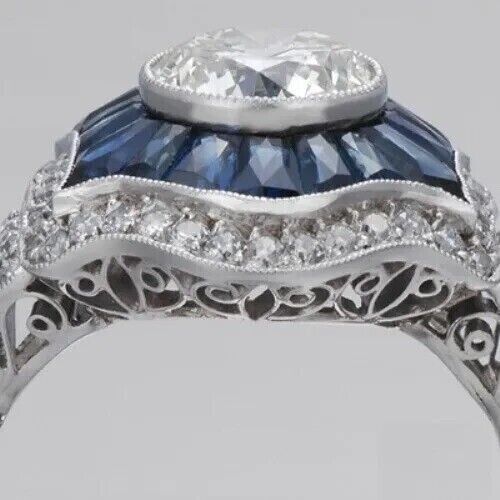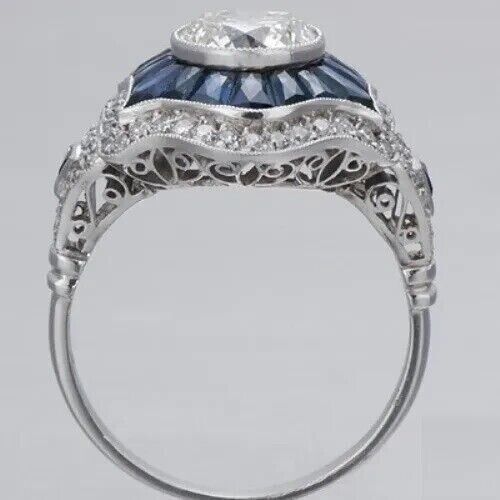 2Ct Round Cut Lab Created Diamond Art Deco Engagement Ring 14K White Gold Plated
