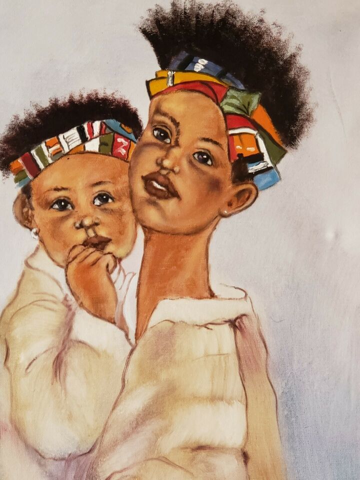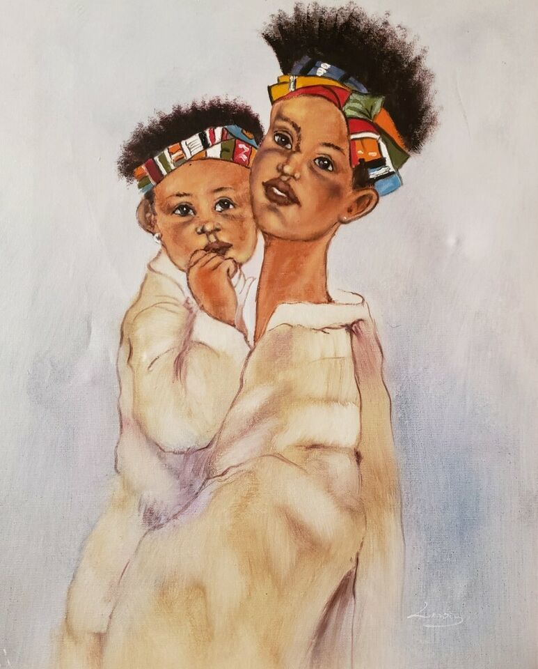 Signed Lewis MOTHER & CHILD Afro American Black Memorabilia Art Painting Kente