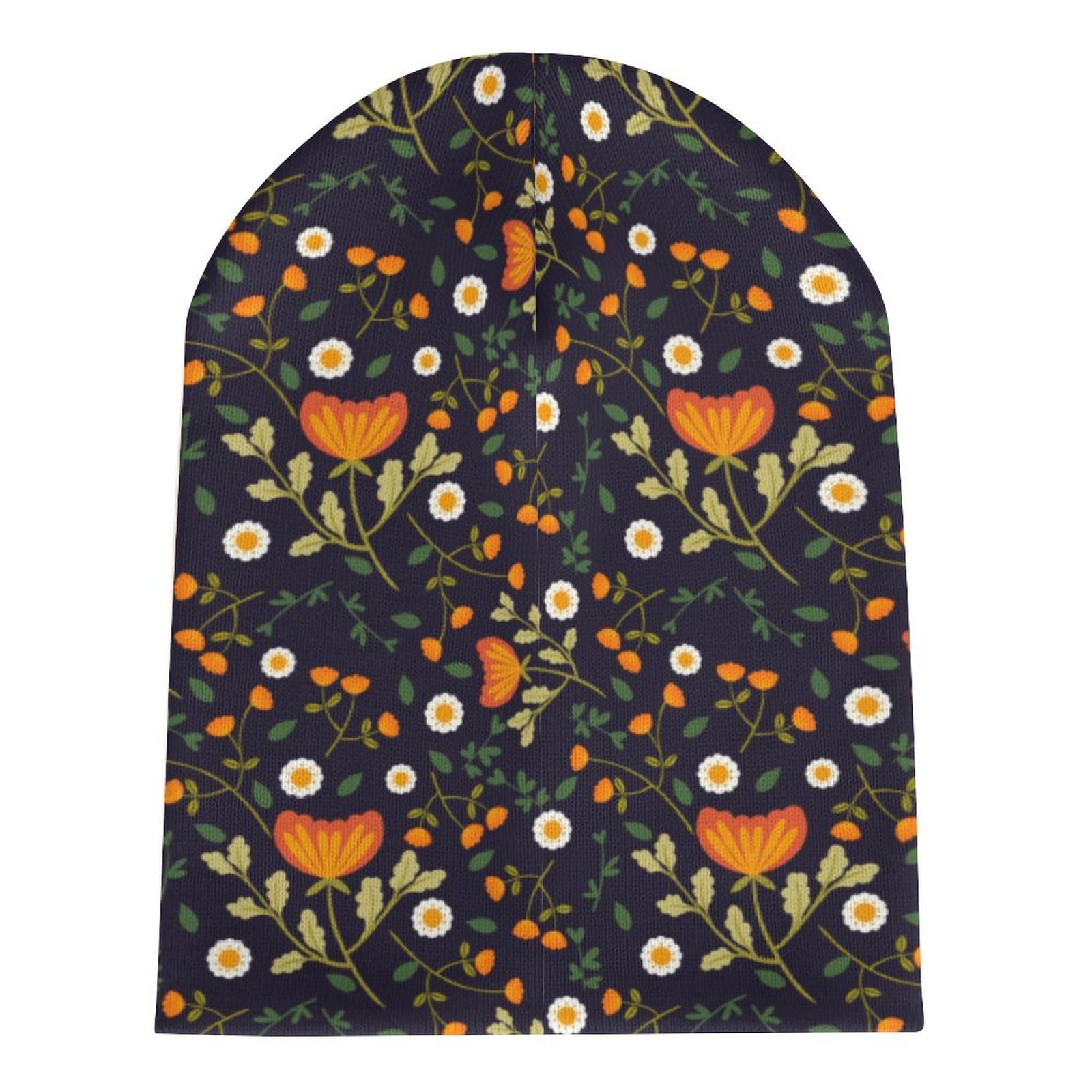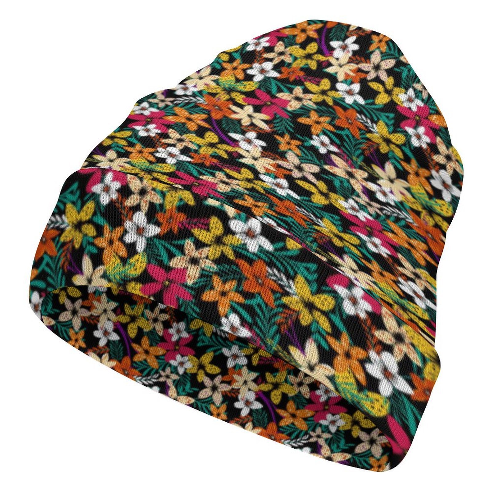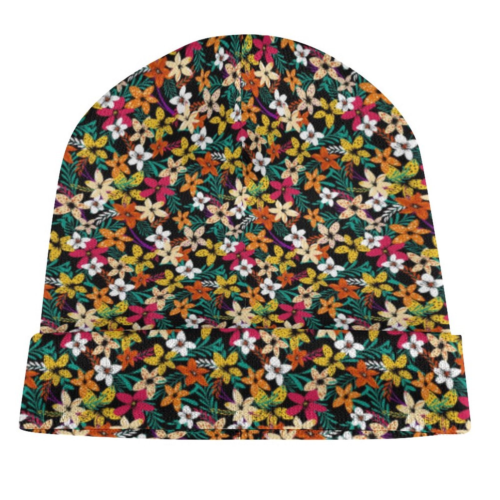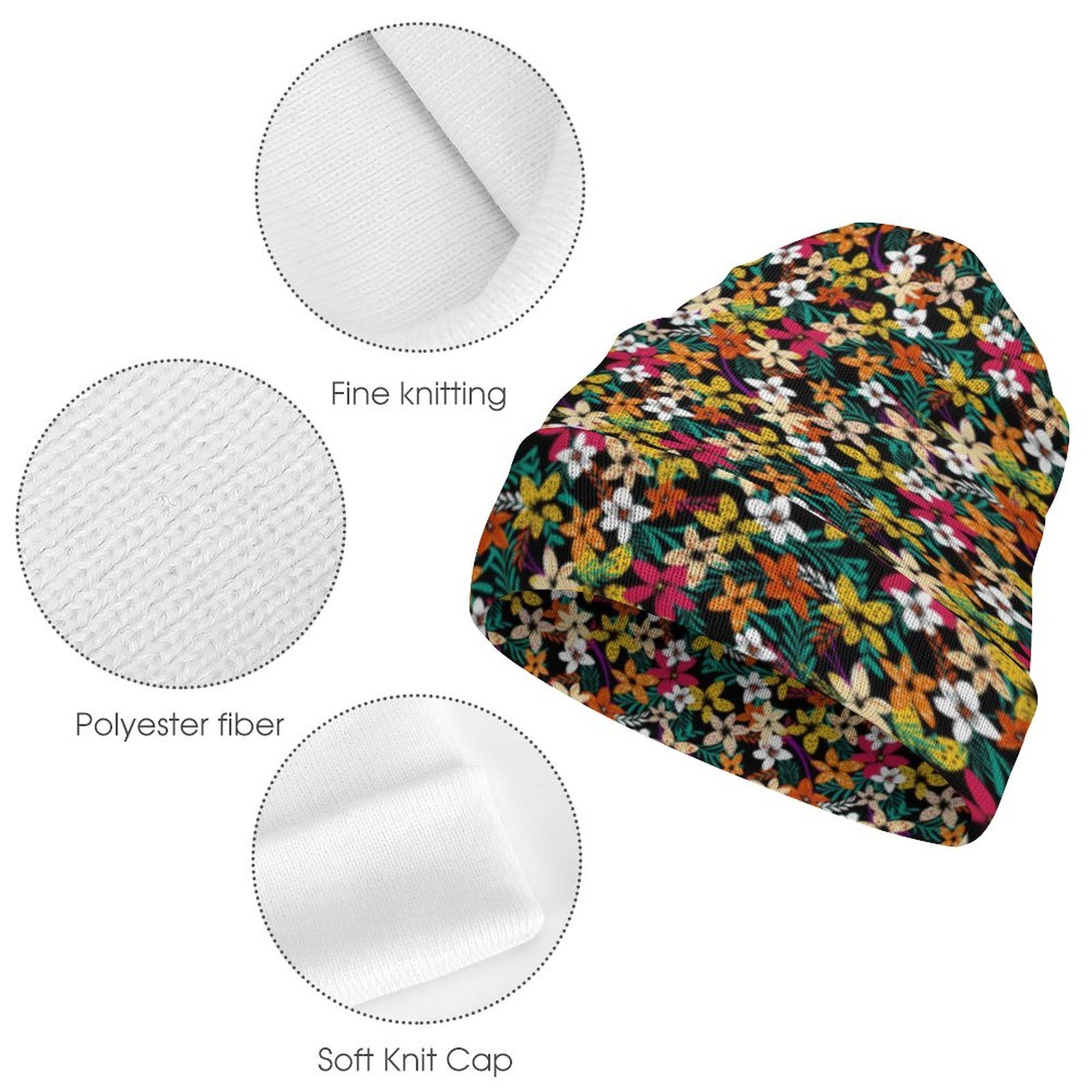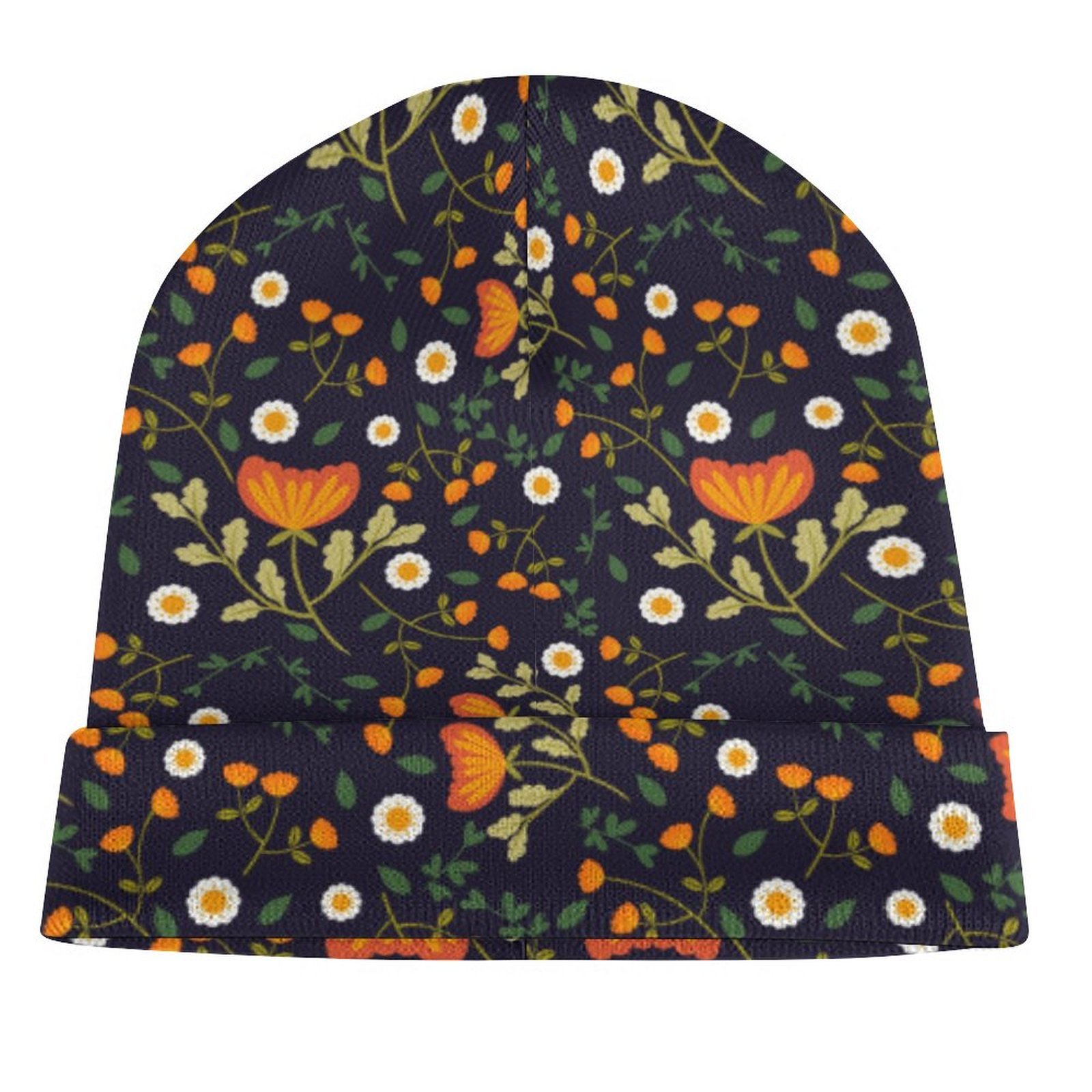 Colorful floral classic flowers grid beanie hats for men women warm winter knitting cap spring autumn.