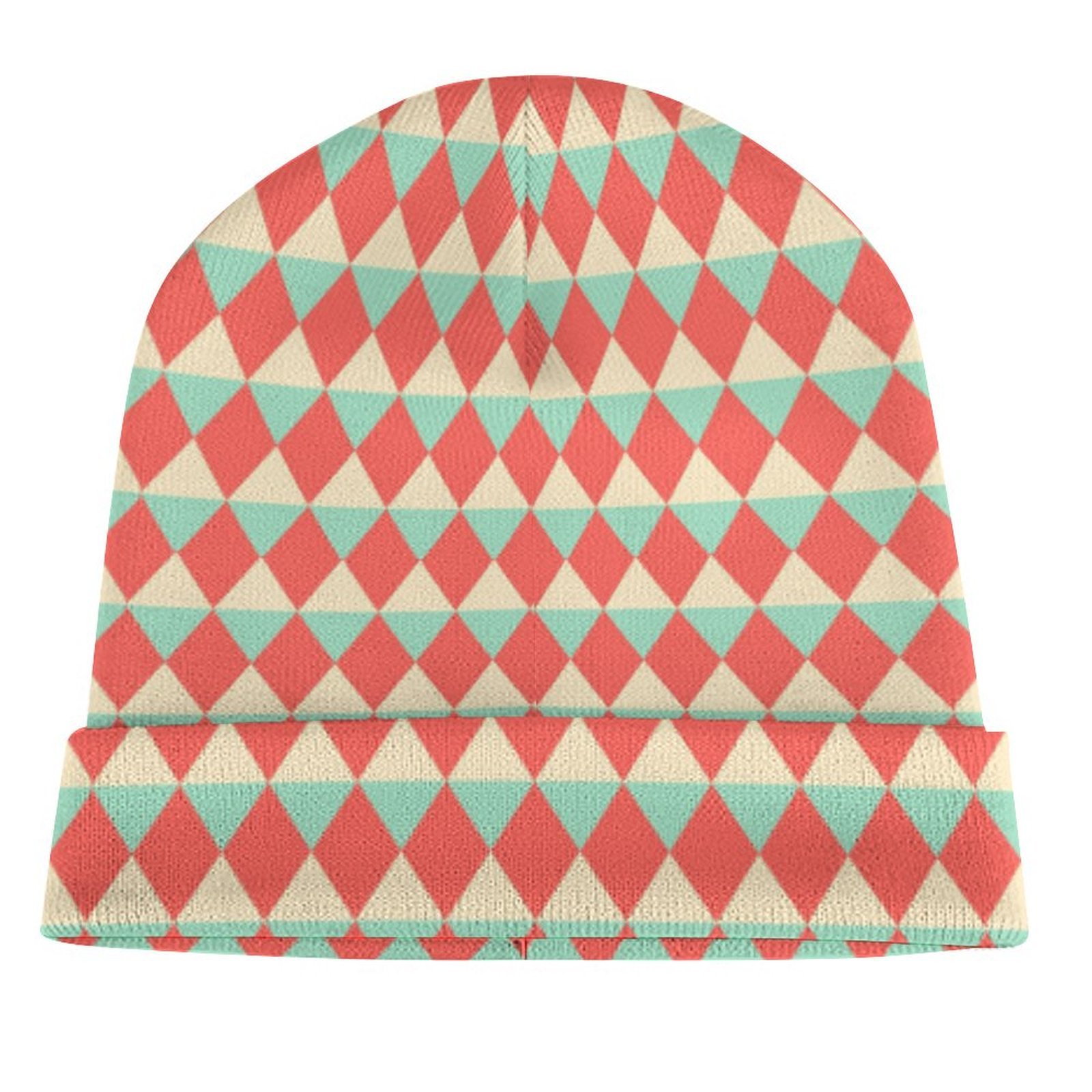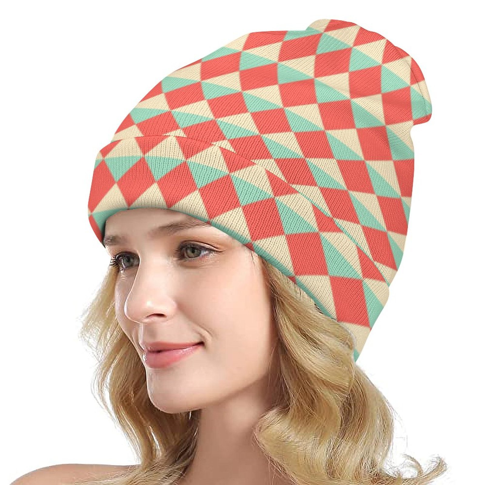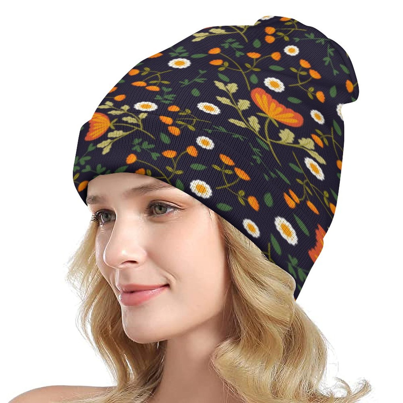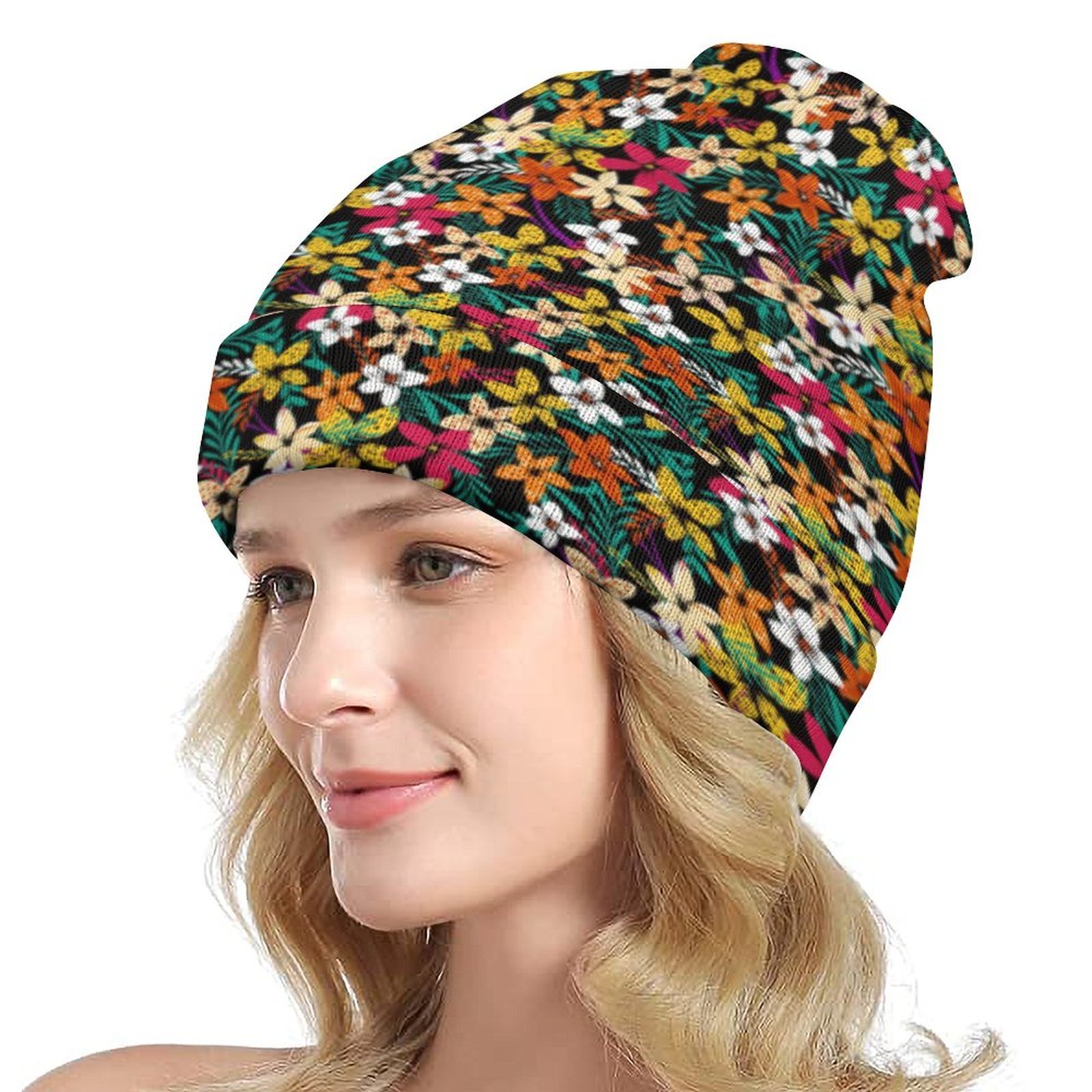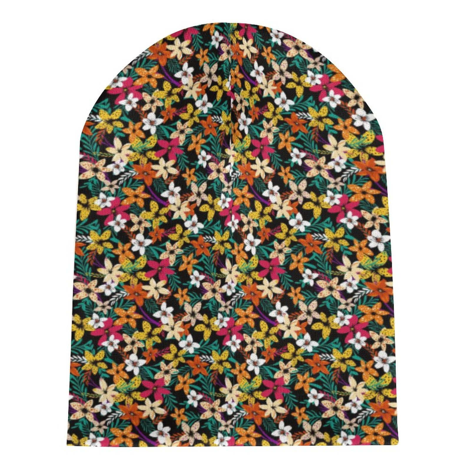 Colorful floral classic flowers grid beanie hats for men women warm winter knitting cap spring autumn.