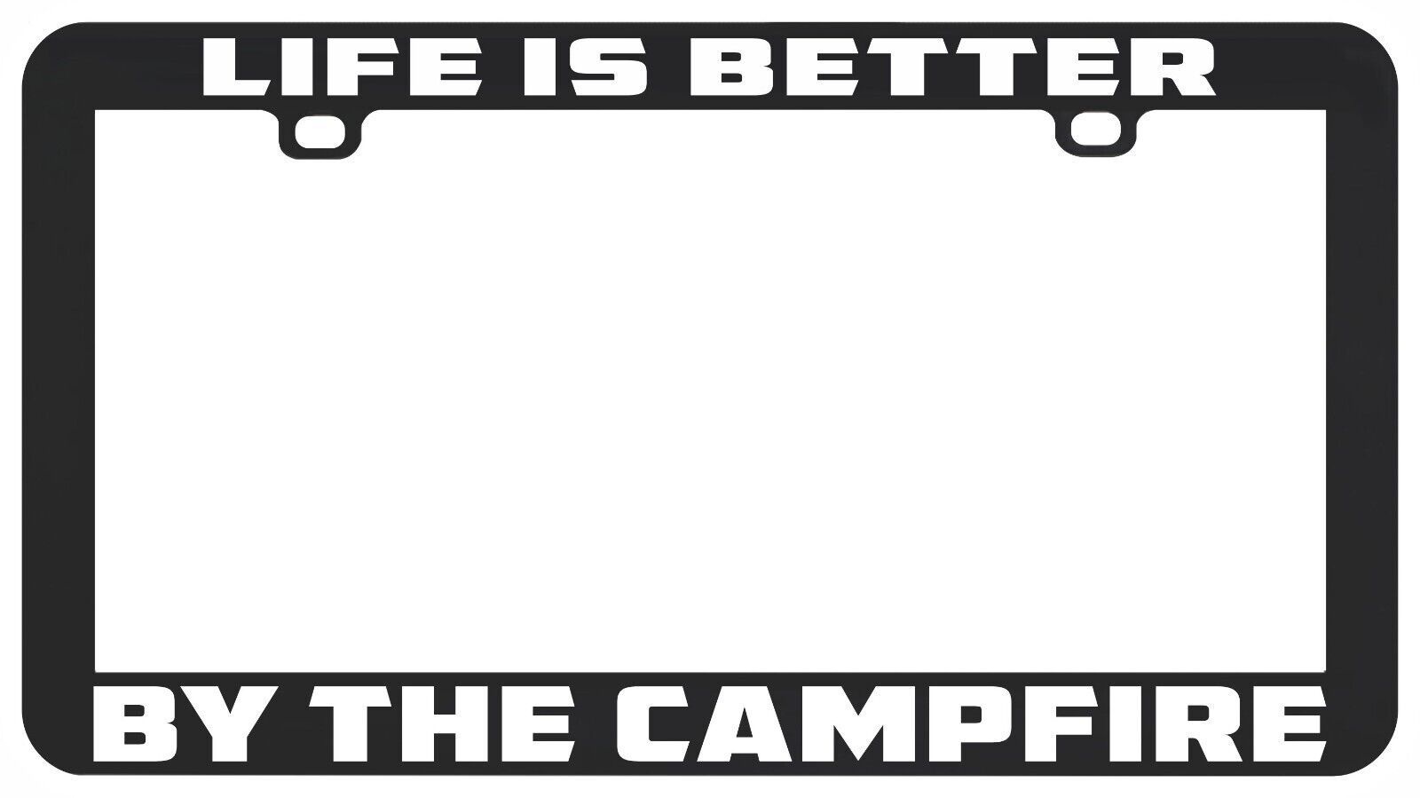 LIFE IS BETTER BY THE CAMPFIRE CAMPING LICENSE PLATE FRAME HOLDER