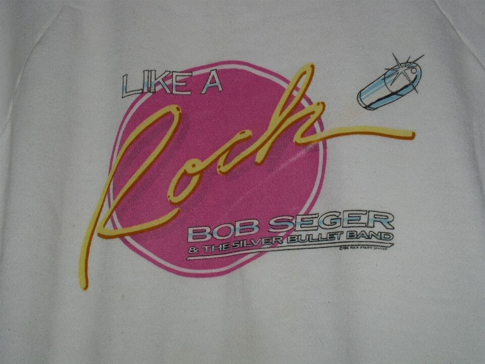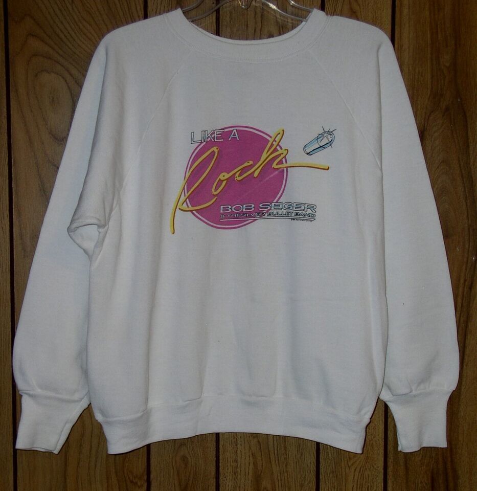 This is a vintage concert tour sweatshirt entitled, "Bob Seger The Silver Bullet Band Like A Rock". Dated 1986 Rock Storm Limited. Tag reads: Signal Made in U.S.A. There is no back printing. A terrific item for the fan or collector.