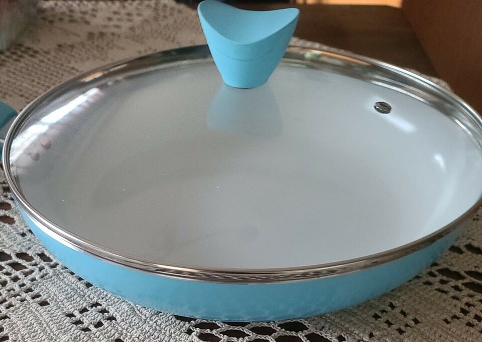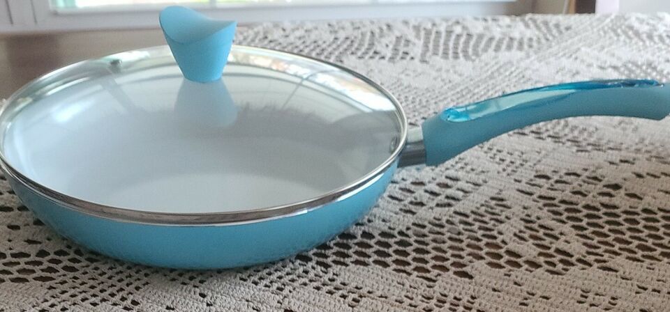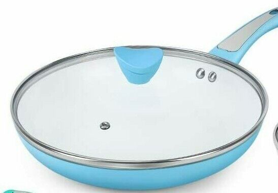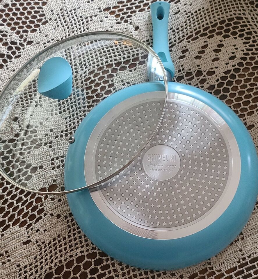 Shineuri ~ 11" Fry Pan ~ Powder Blue ~ Aluminum ~ Non Stick Frying Pan ~ W/Lid