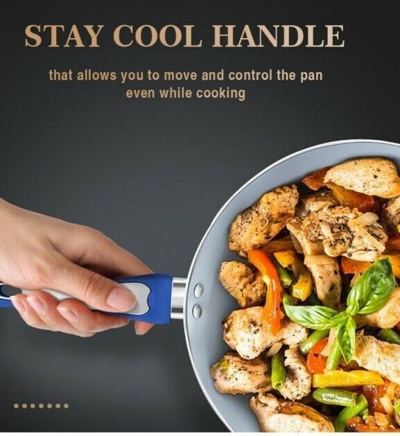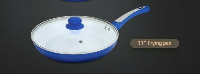Shineuri ~ 11" Fry Pan ~ Royal Blue ~ Aluminum ~ Non Stick Frying Pan ~ W/Lid
