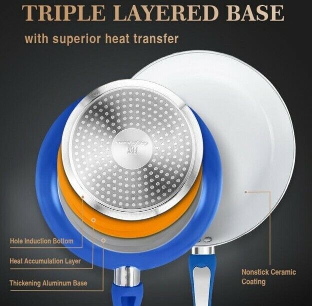 Frying pan has a 3-layer ~ reinforced ~ long-lasting nonstick for easy food release and quick cleanup