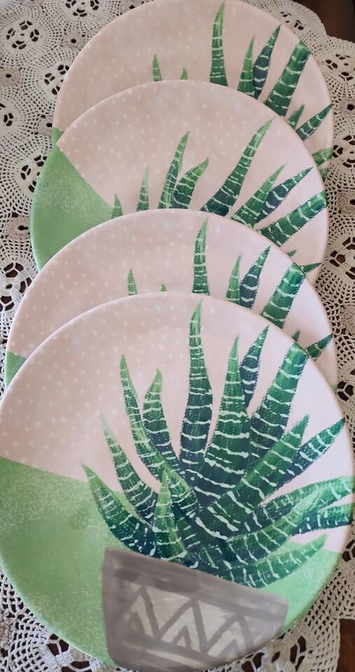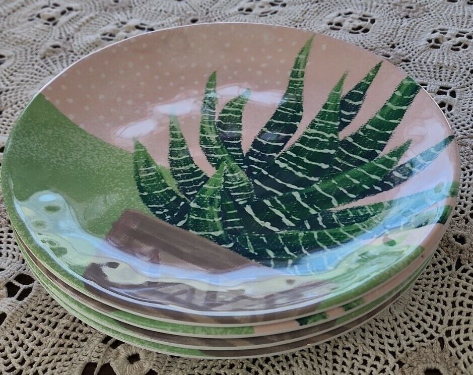 Zak Designs ~ Four (4) Melamine ~ Summer Cactus Design ~ 11" Dia Dinner Plates