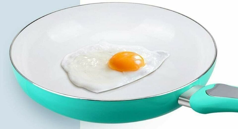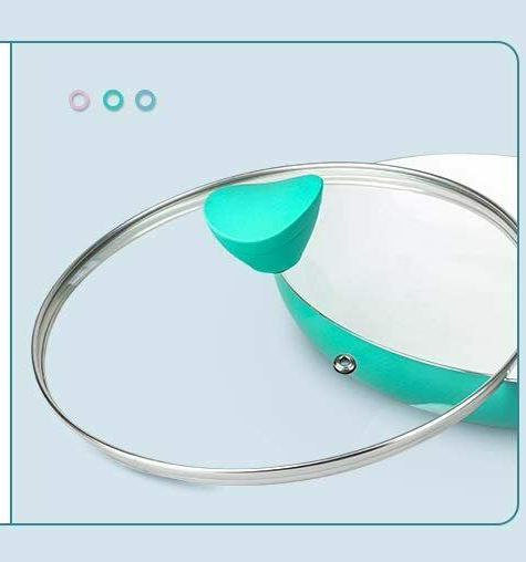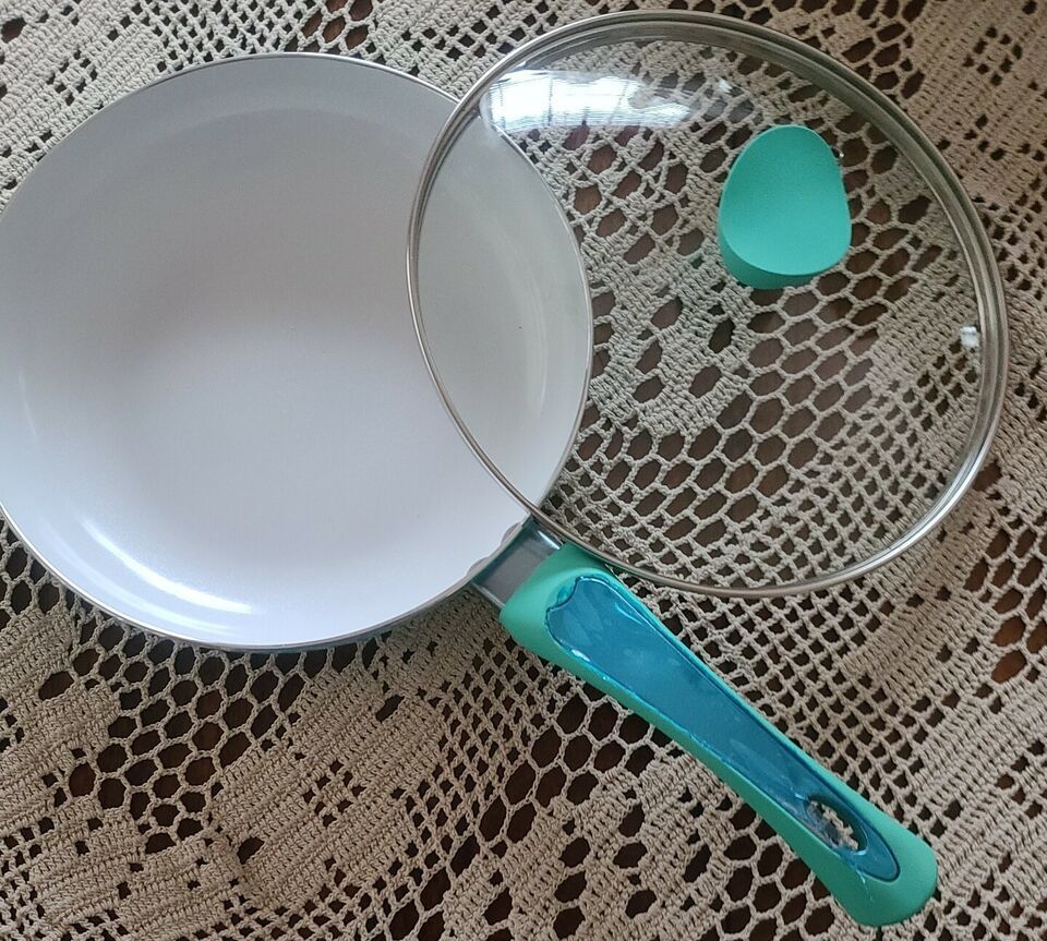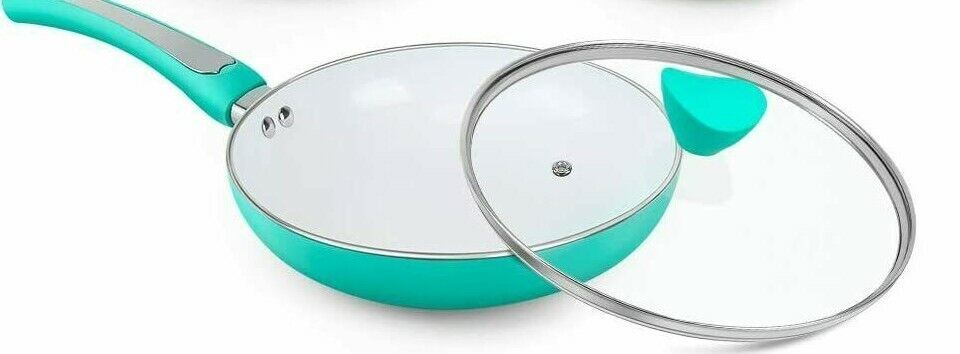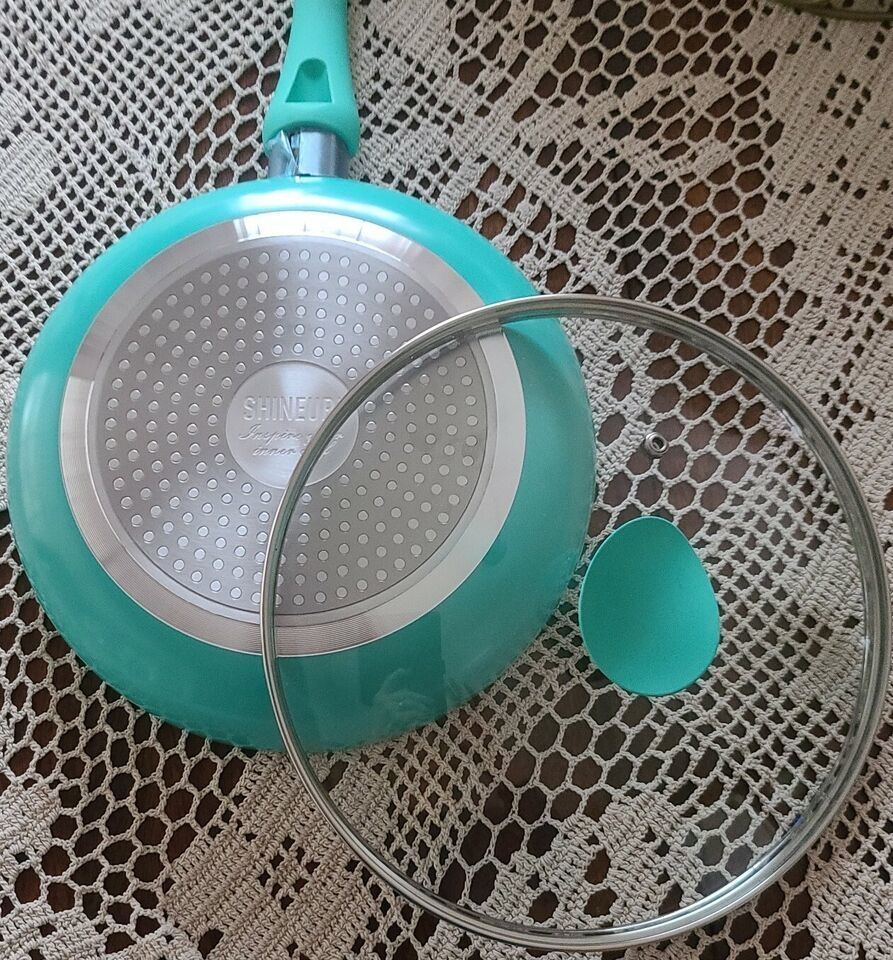 Shineuri ~ 9.5" Fry Pan ~ Green ~ Aluminum ~ Non Stick Frying Pan ~ W/Lid