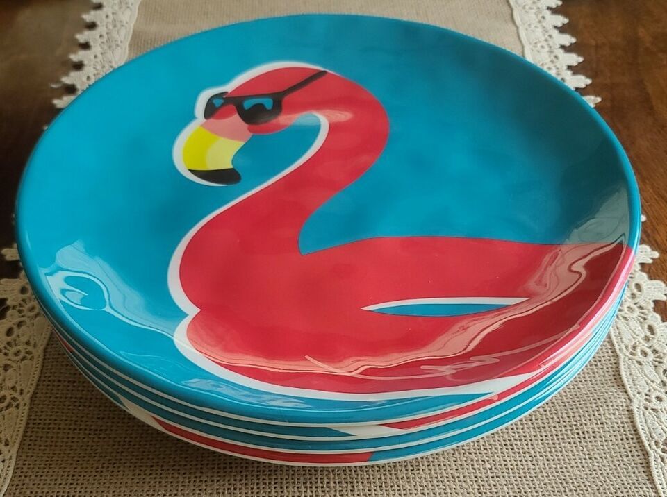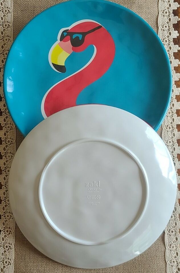 Zak Designs ~ Four (4) Melamine ~ Flamingo Design ~ 11" Dinner Plates