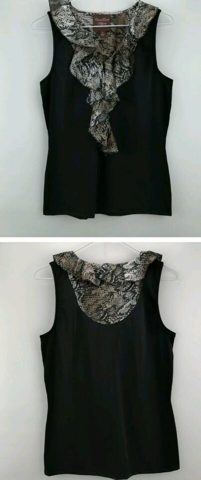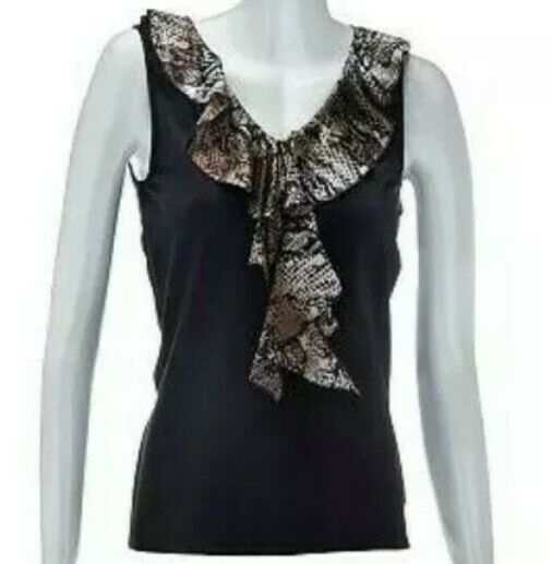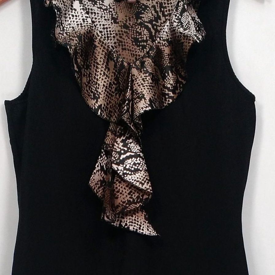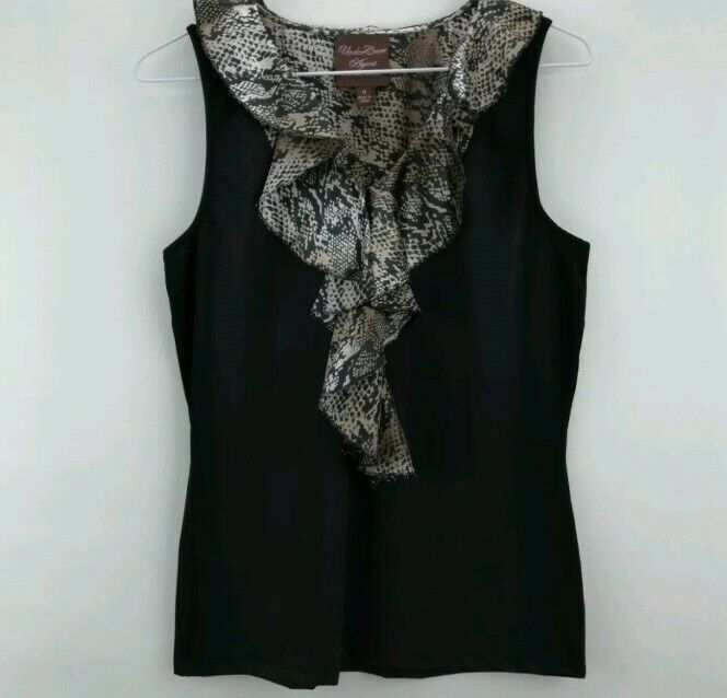 Kathleen Kirkwood ~ Python Black Animal Print Ruffle Cami ~ Size Large ~ A224167