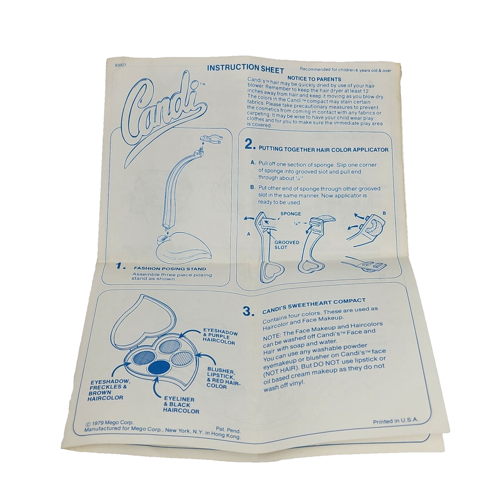 VINTAGE 1978 18" CANDI SUPER SIZE DOLL REPLACEMENT PAPER INSTRUCTION SHEET