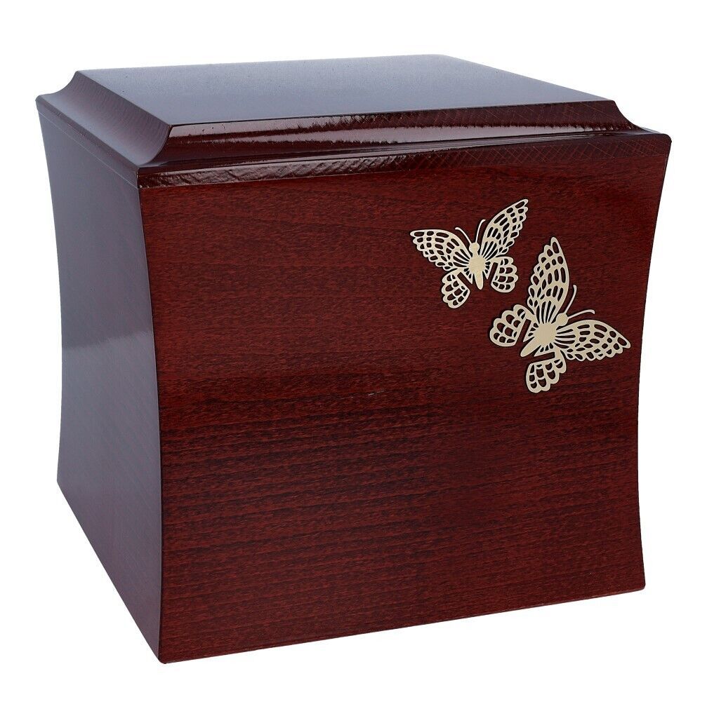 Wooden urn crafted with precision. It is more than a mere container; it's a symbol of metamorphosis and the enduring beauty of memories. The butterflies delicately grace the surface, representing the profound changes in life and serving as a poignant reminder of the everlasting spirit your loved one brought into your life.