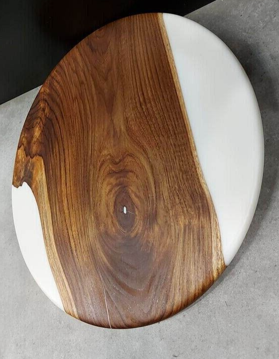 White Epoxy Round Coffee Table Wooden Handmade Furniture Center Table Home Decor
