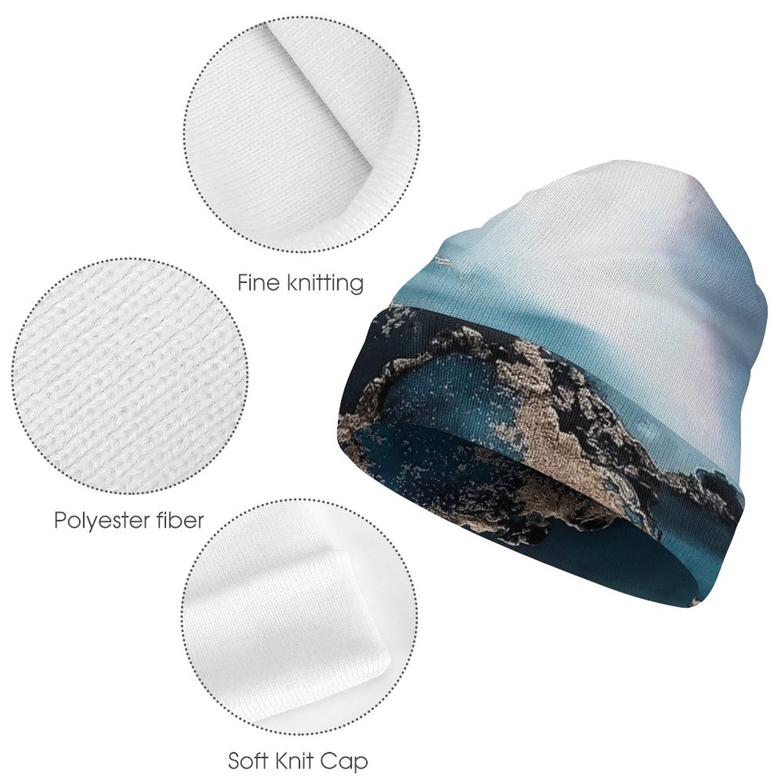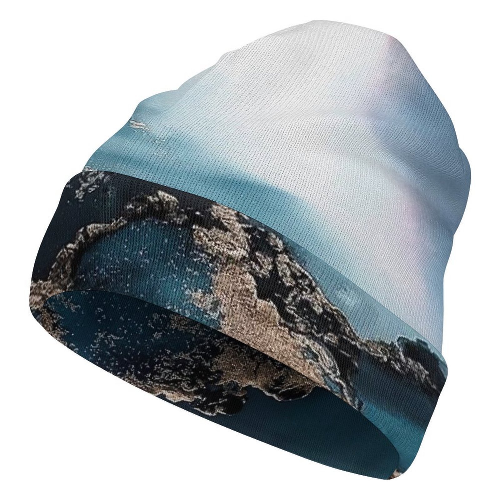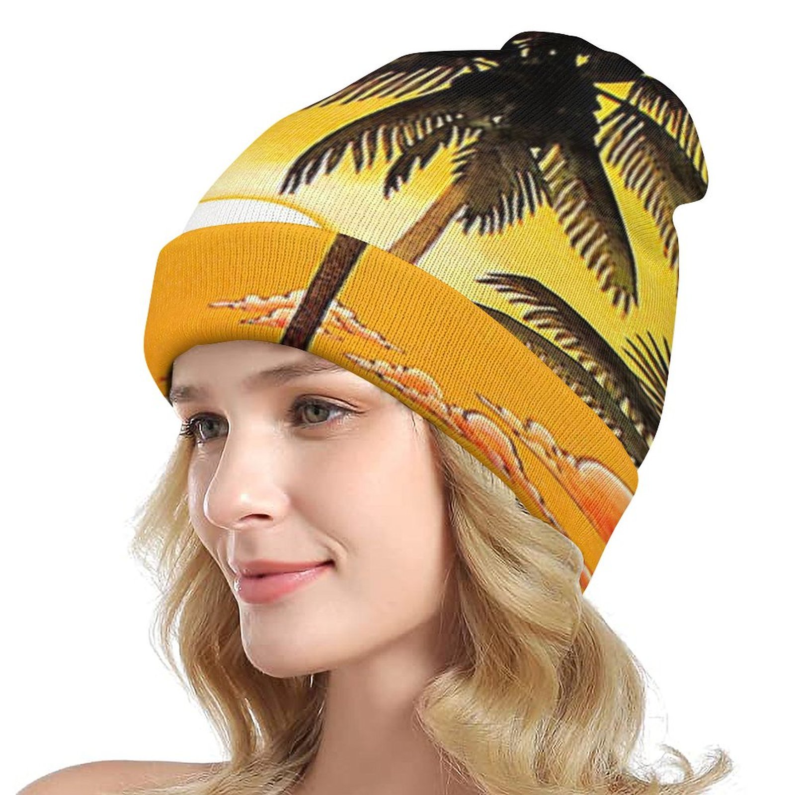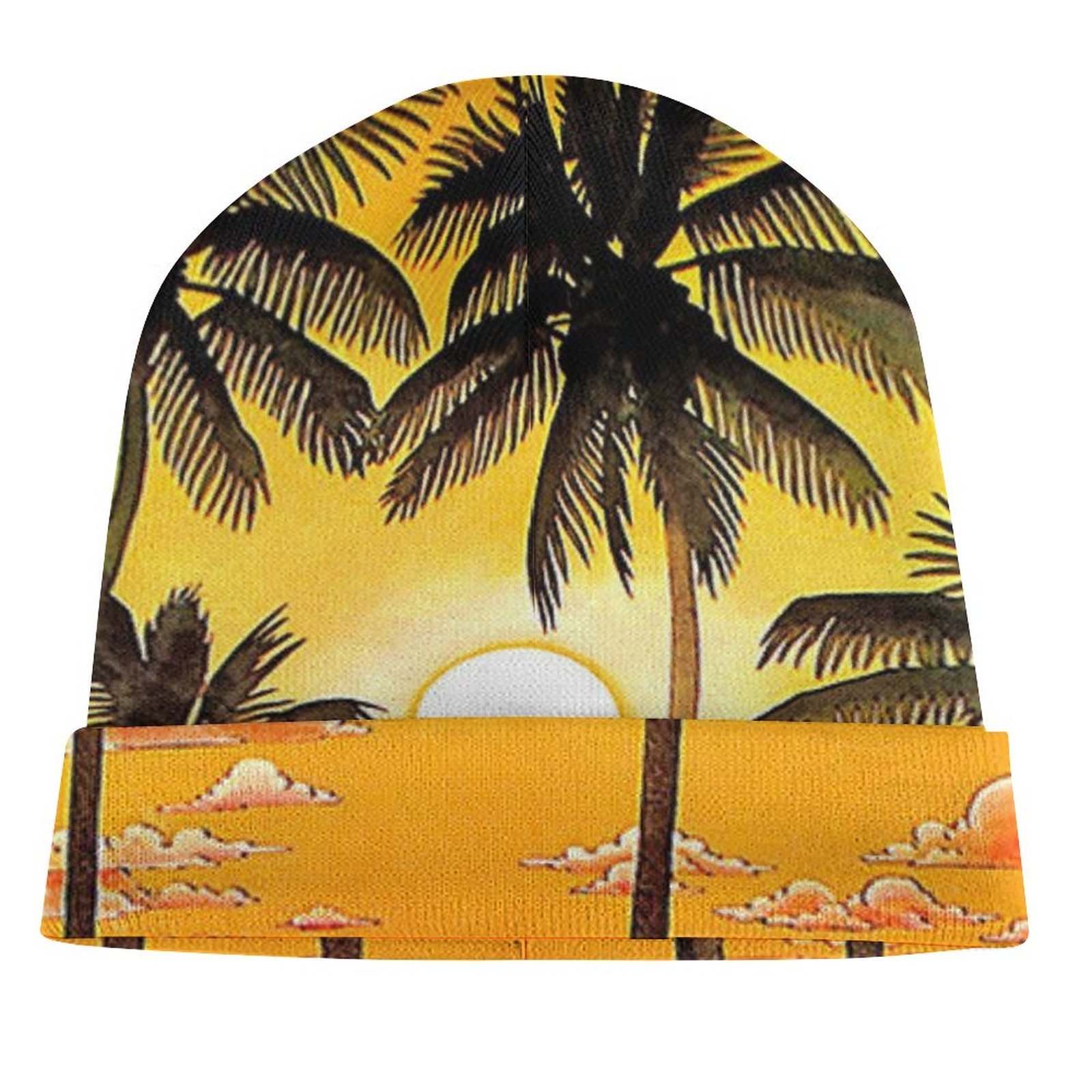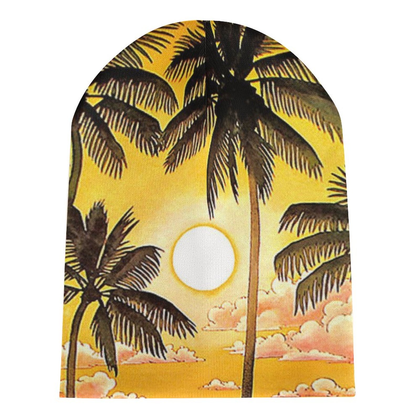 Colorful beach palm tree sunset marble beanie hats for men women warm winter knitting cap spring autumn.