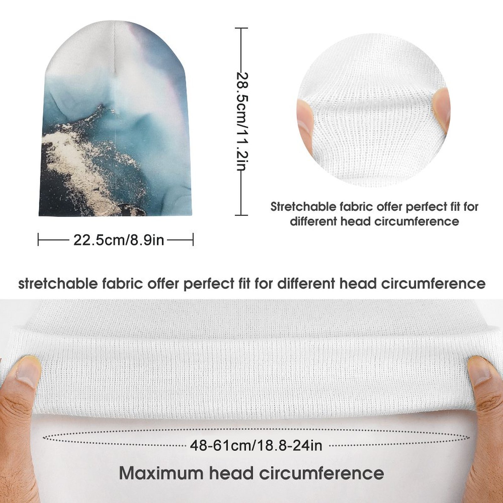 Product size: circumference (range): 48-61cm. width x length 22.5 x 28.5 cm,