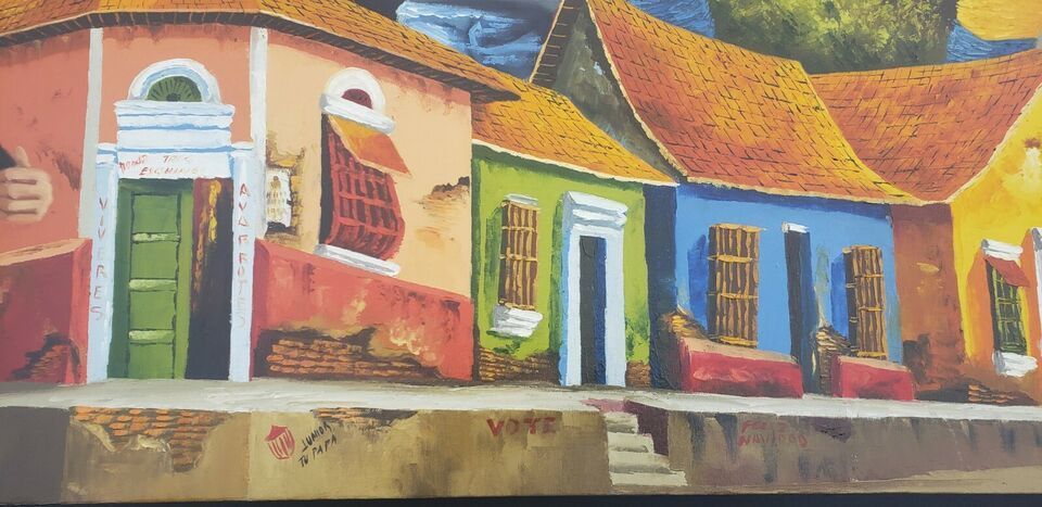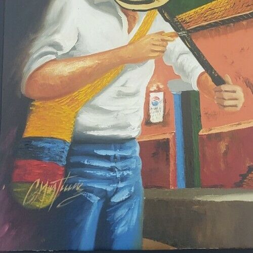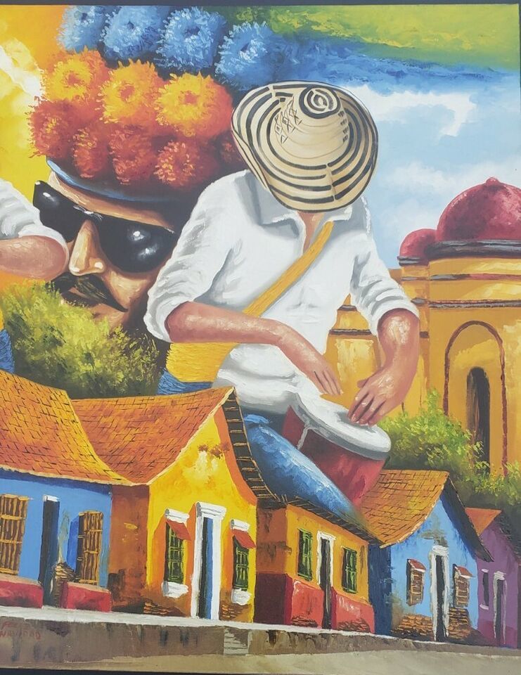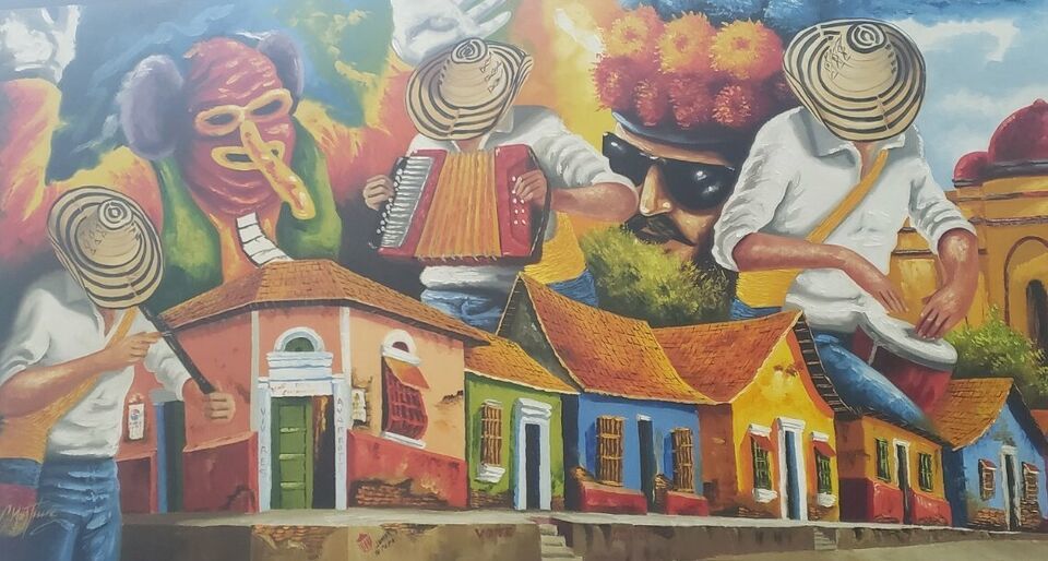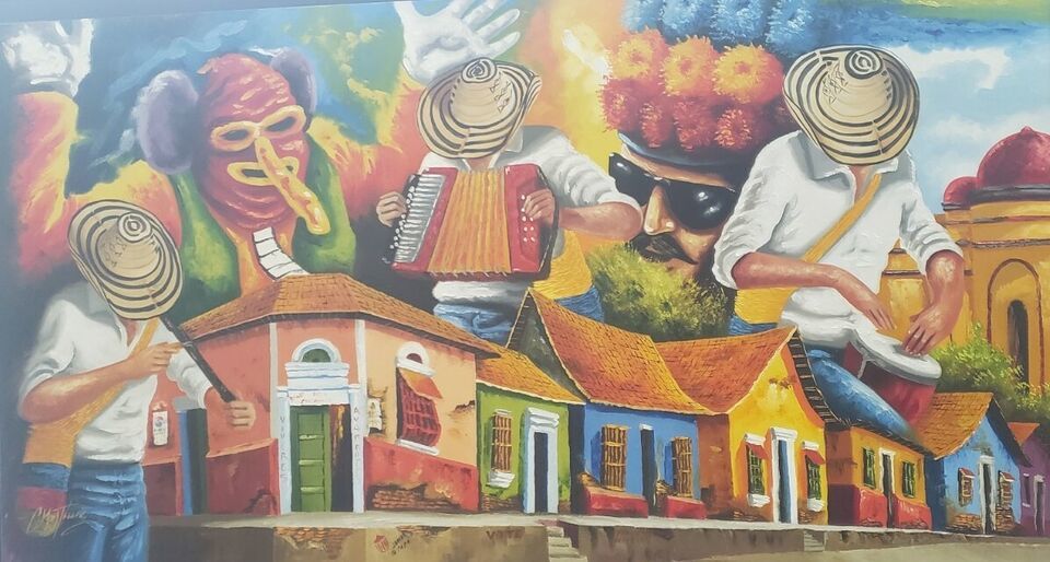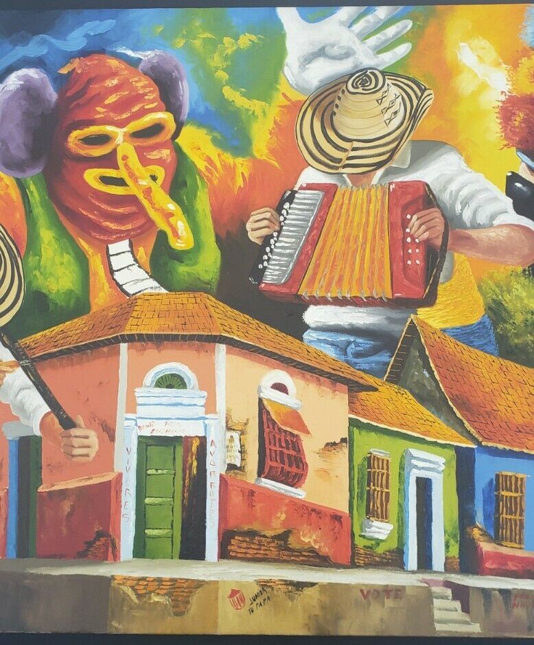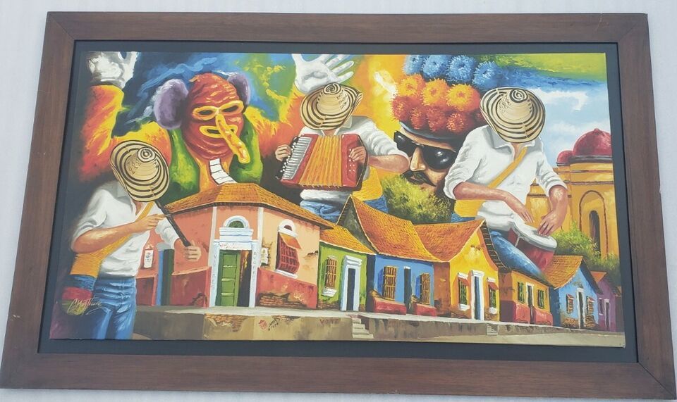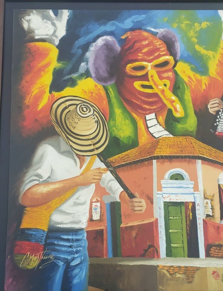 Rare Signed Carnival de Barranquilla Festival Folk Art Large Painting Colombia