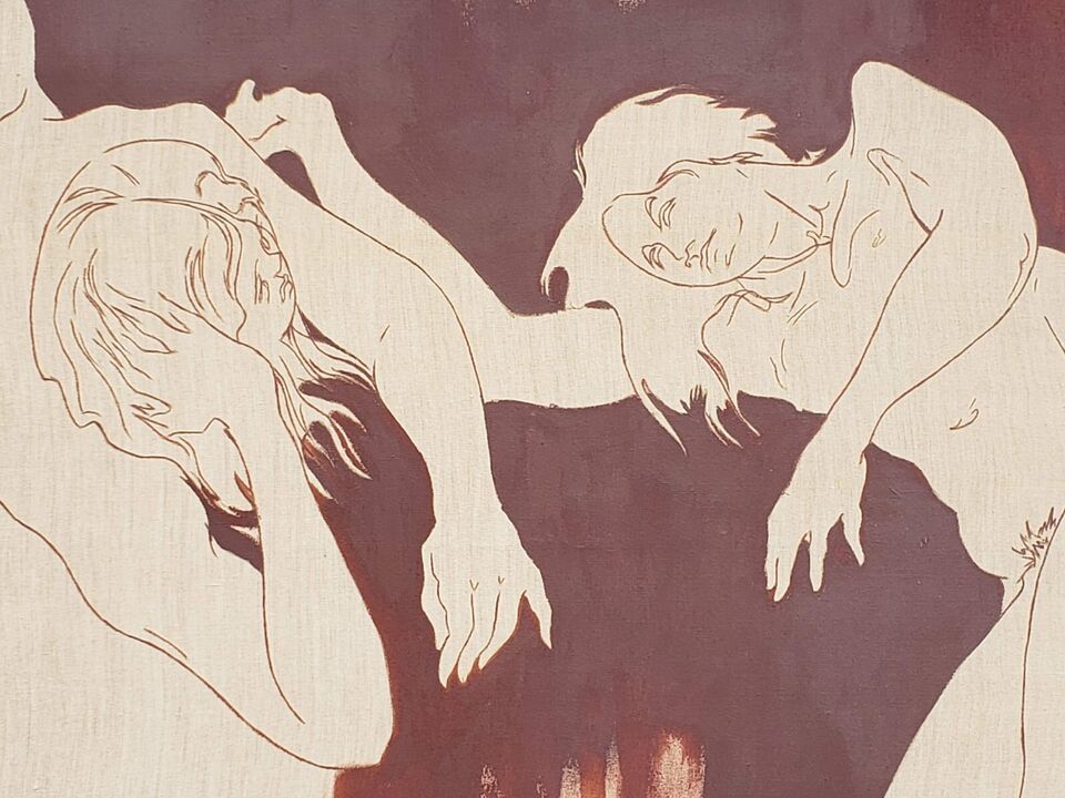 Vintage & Original EUGENE MASSIN - Two Women - Nude Art Large Painting Florida