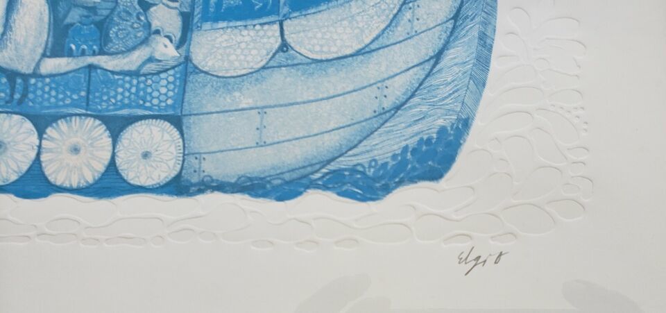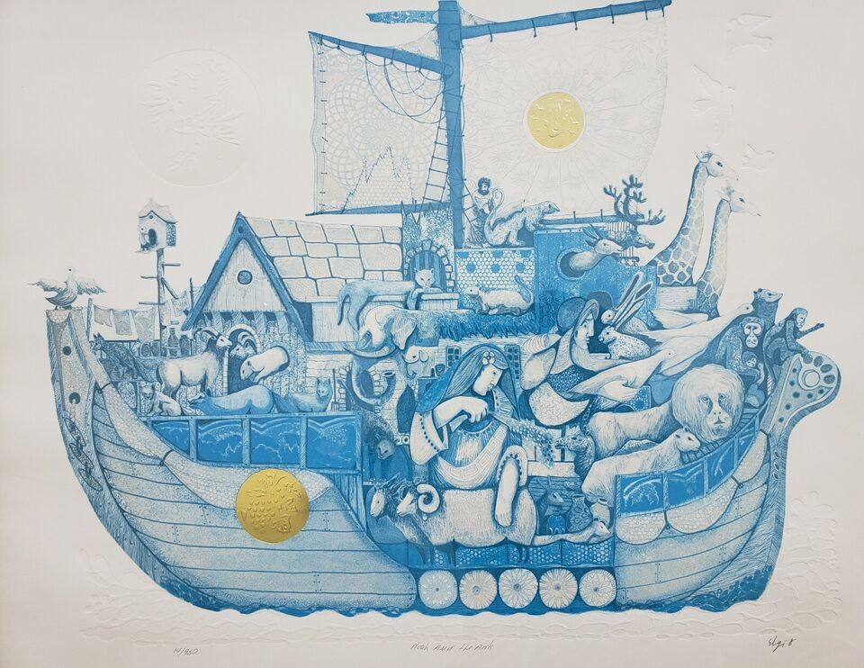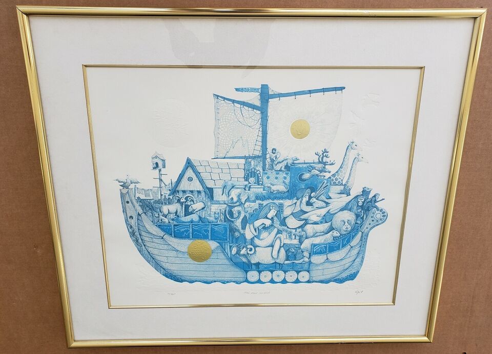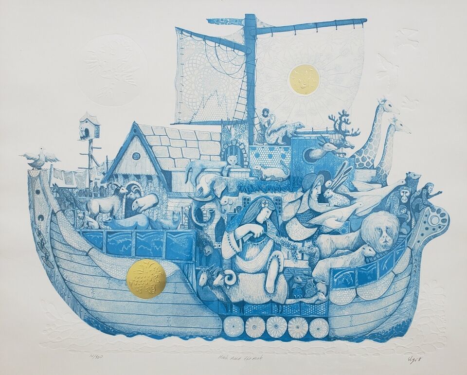 Signed Amram Ebgi "Noah and the Ark" Blue and 50 similar items