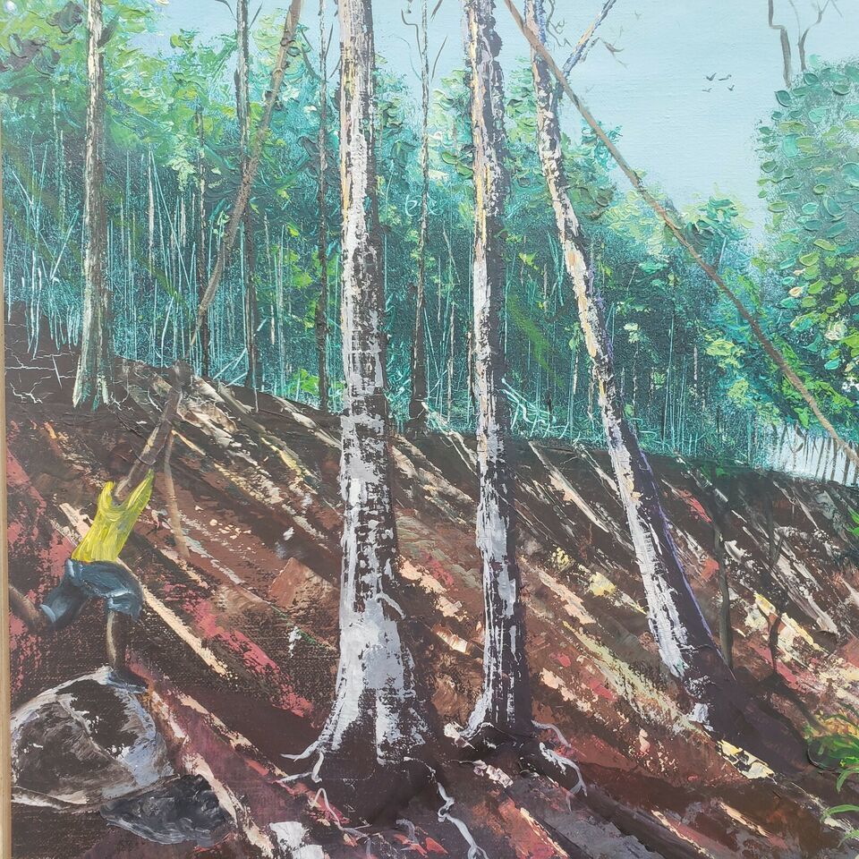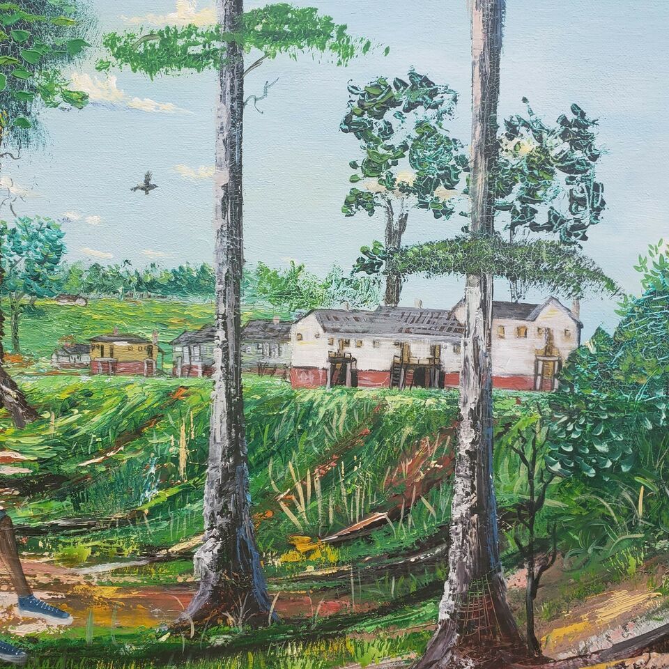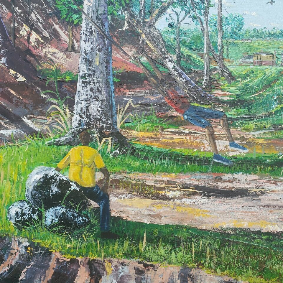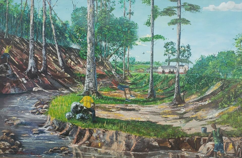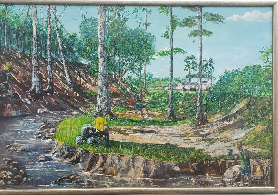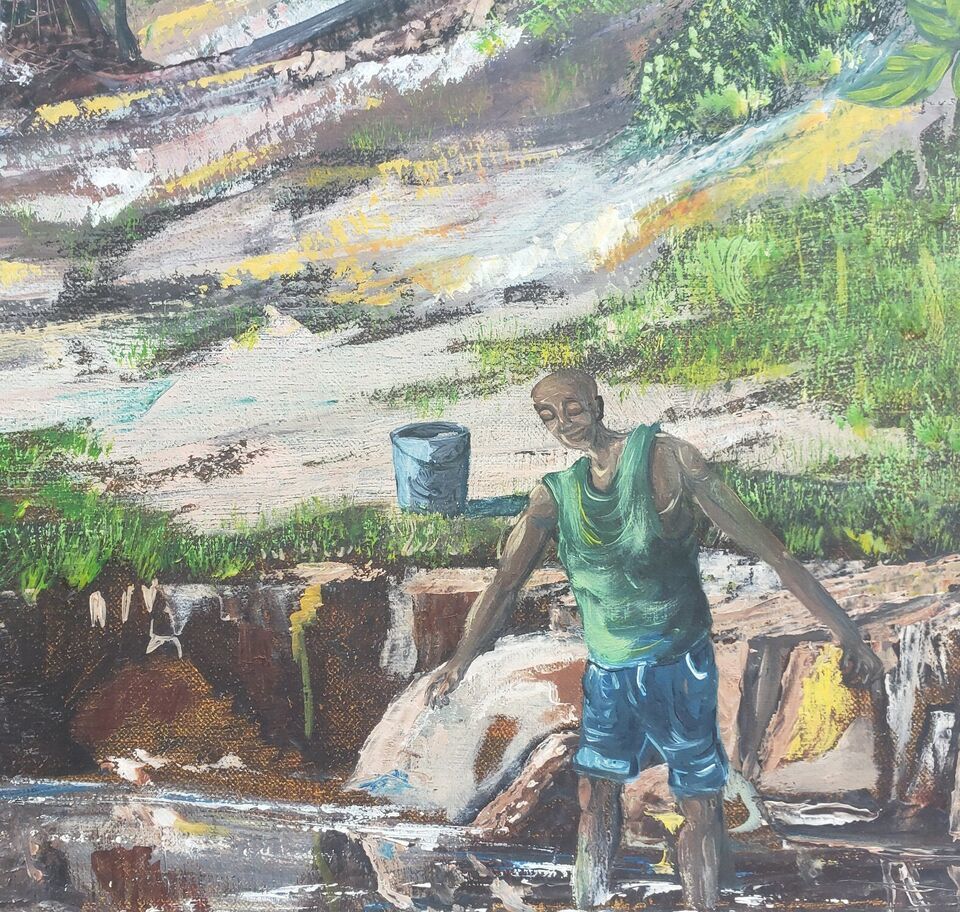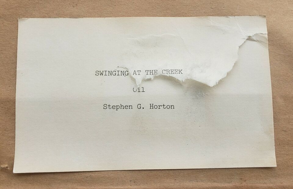 Vintage Rare 1940 Stephen V. Horton African-American Black Memorabilia Art Painting - Titled: Swinging At the Creek - Frame measures 26" by 38" inches. Painting is in excellent condition as displayed in the photo gallery. Shipped with USPS Priority Mail.