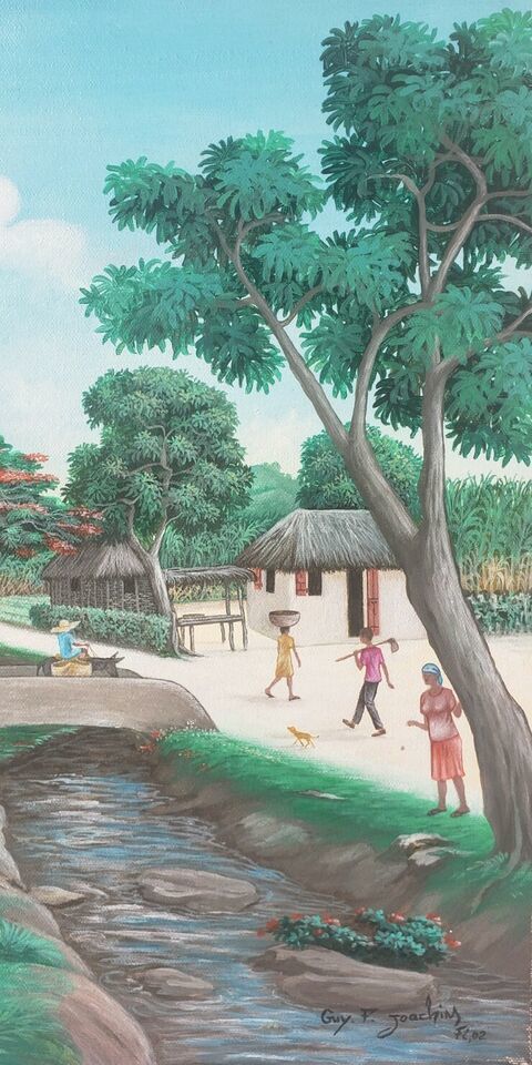 Signed 2002 Guy F. Joachim Haitian Countryside Landscape Art Painting Haiti