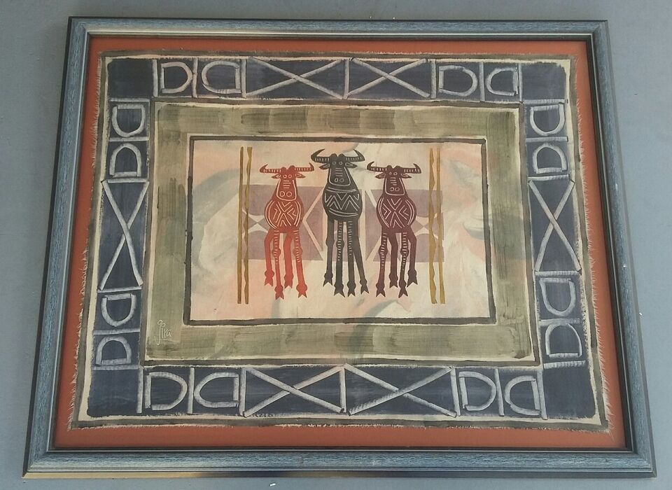 Signed Jira Rare & Original African Art Textile Painting Capetown, South Africa