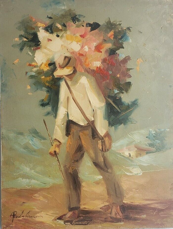 Rare LUIS JOSÉ PEÑUELA PINZON Flower Vendor SILLETEROS Vintage Painting Colombia