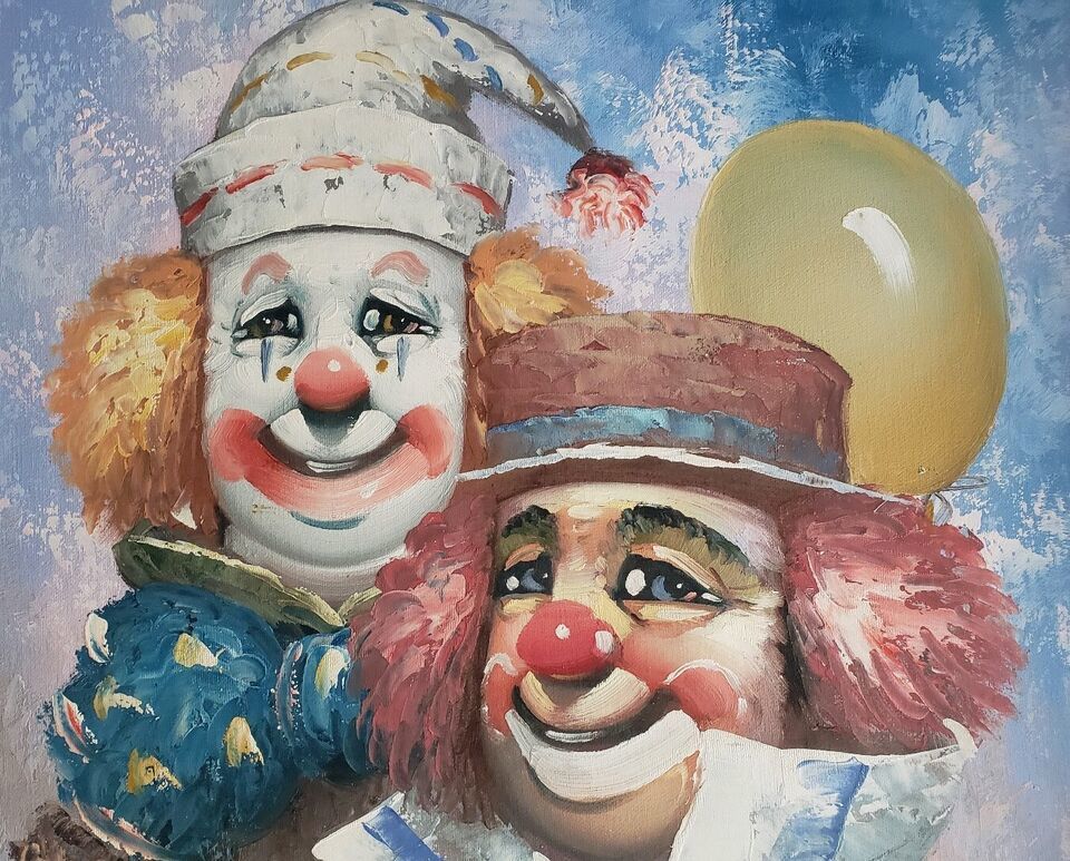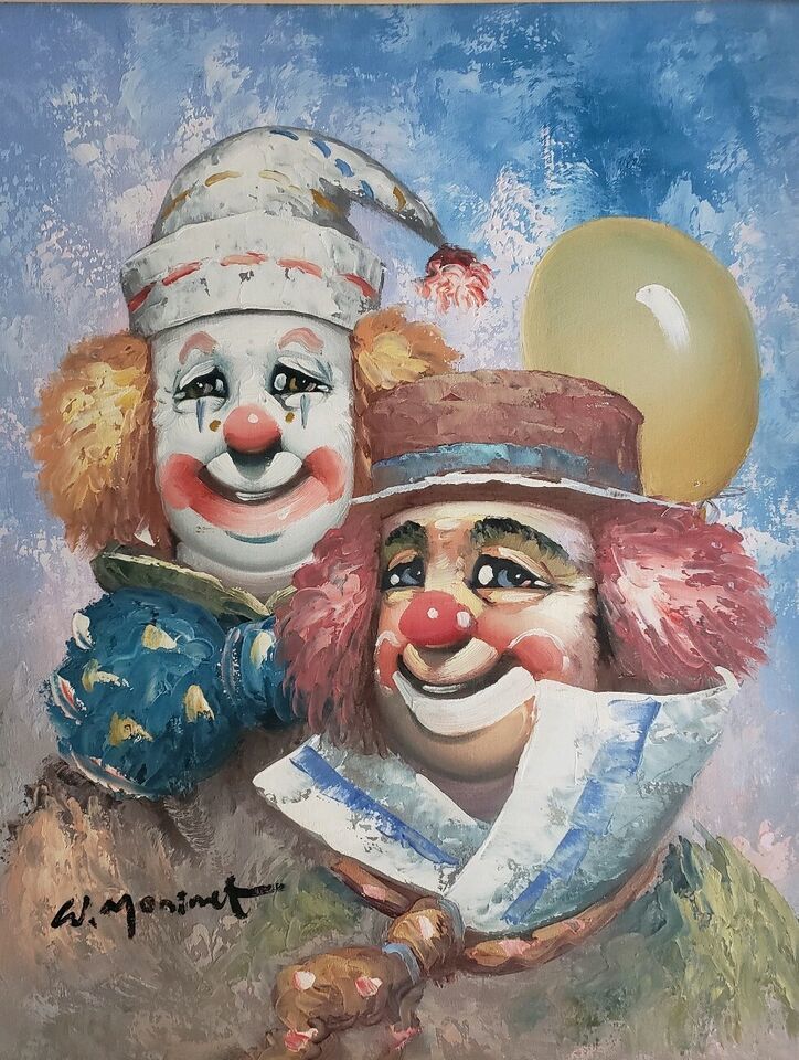 LISTED ARTIST William Moninet Vintage Art Original Oil Painting Circus Clowns.