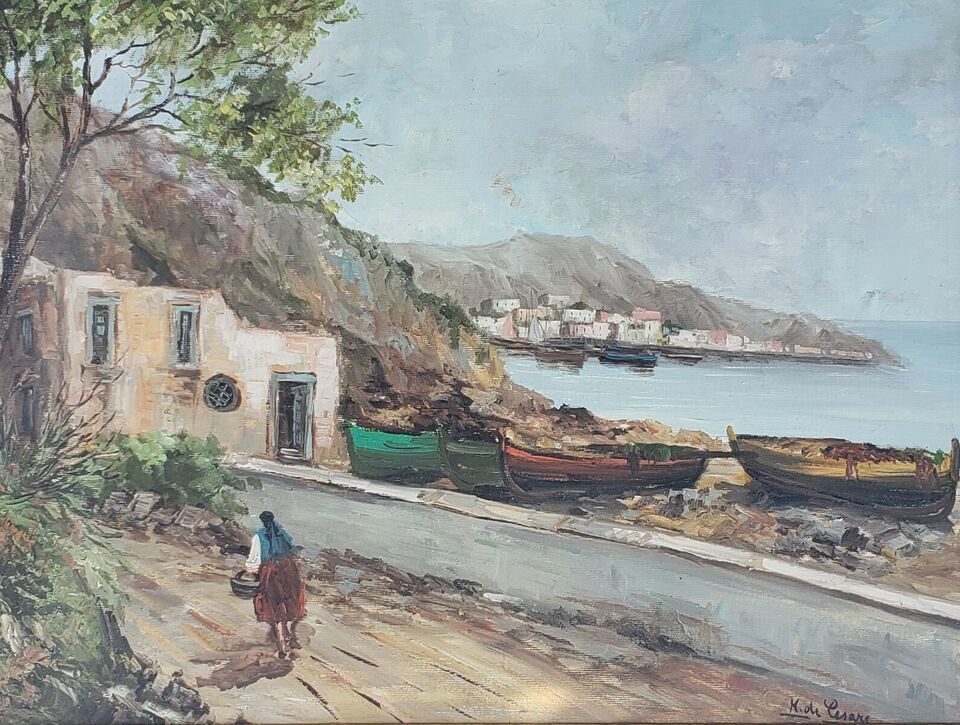 Signed M. Ole Cesare Scenic SEASIDE TOWNSCAPE
