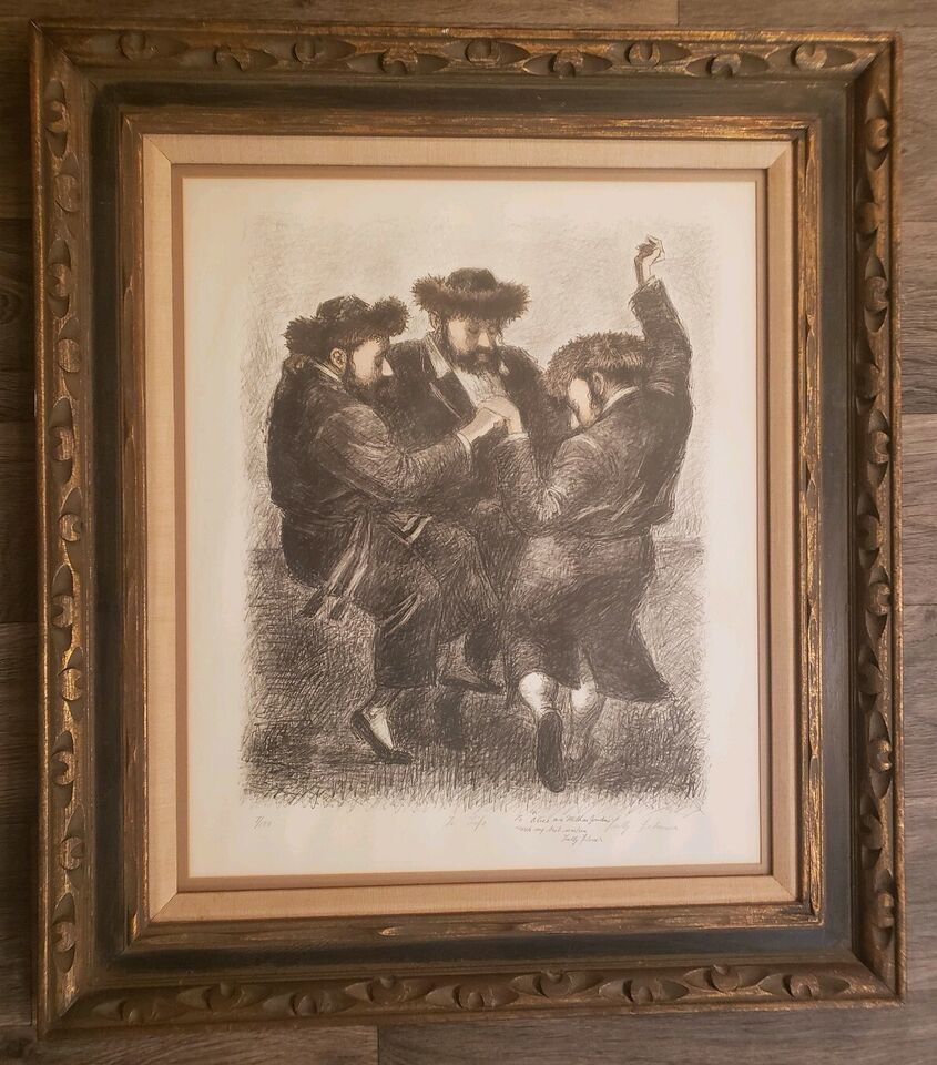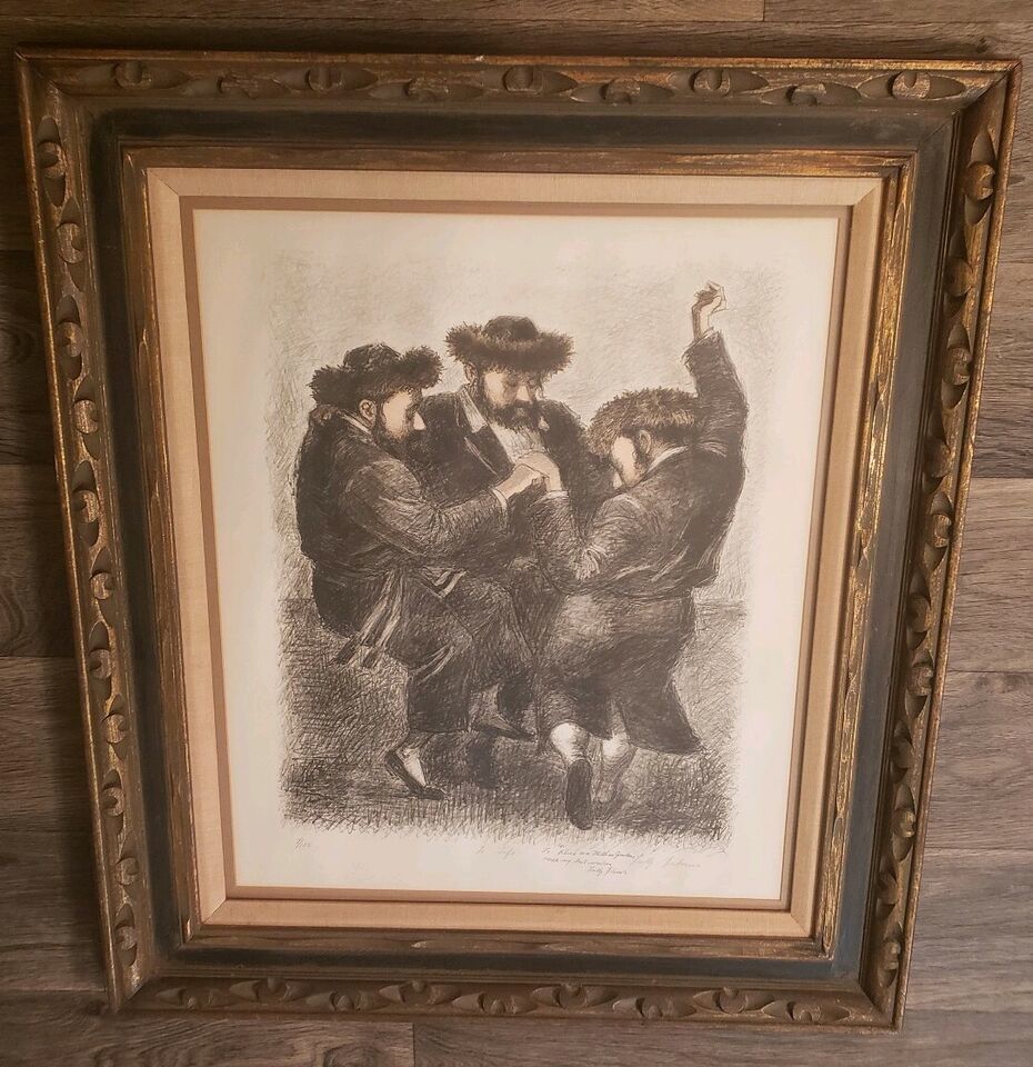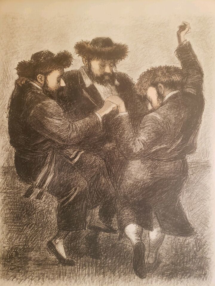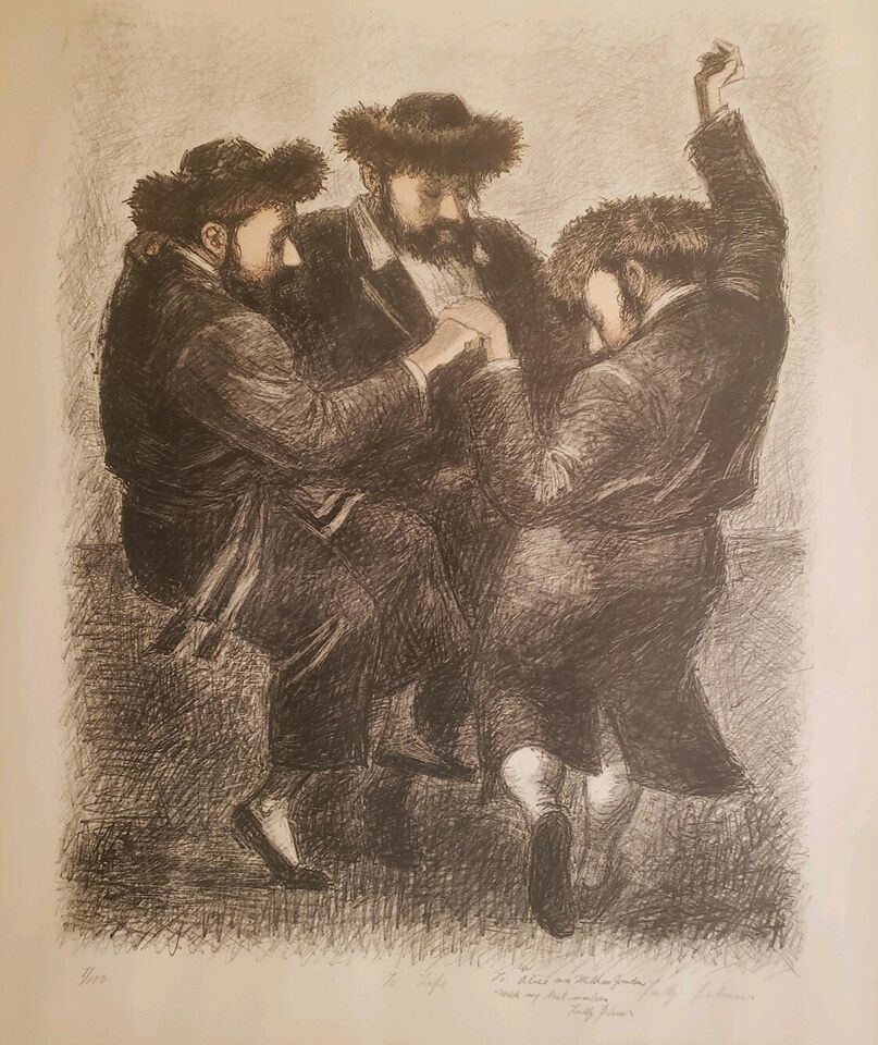 Hasidic Dance "To Life" L'Chaim Judaica Lithograph,