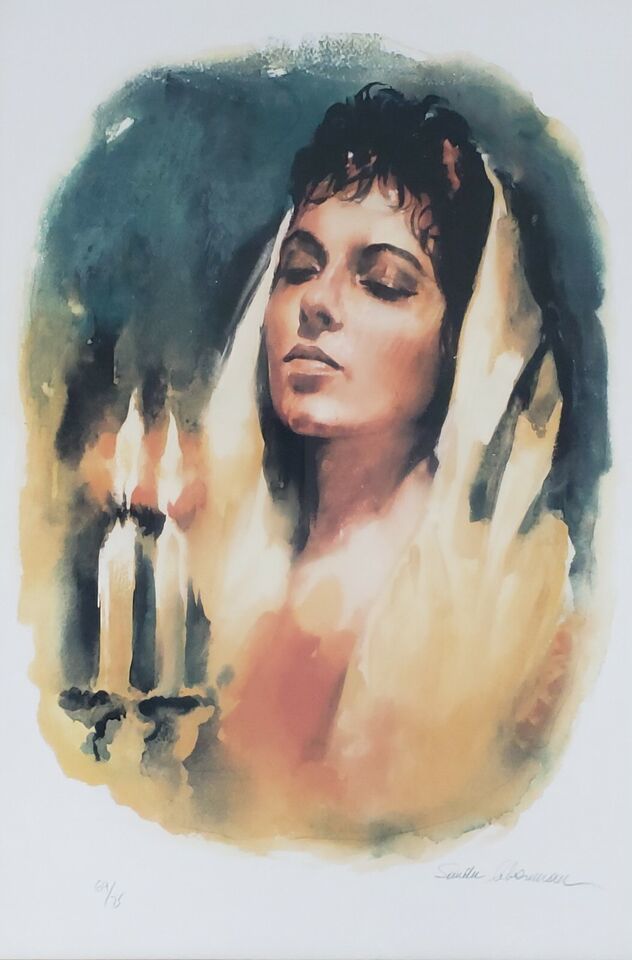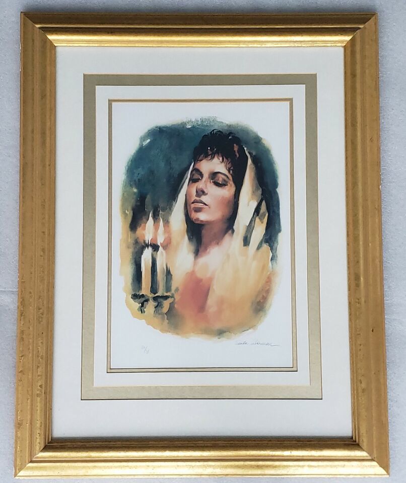 Signed & Numbered 69/75 Sandu Liberman Woman & Shabbas Candles Judaica Art Print