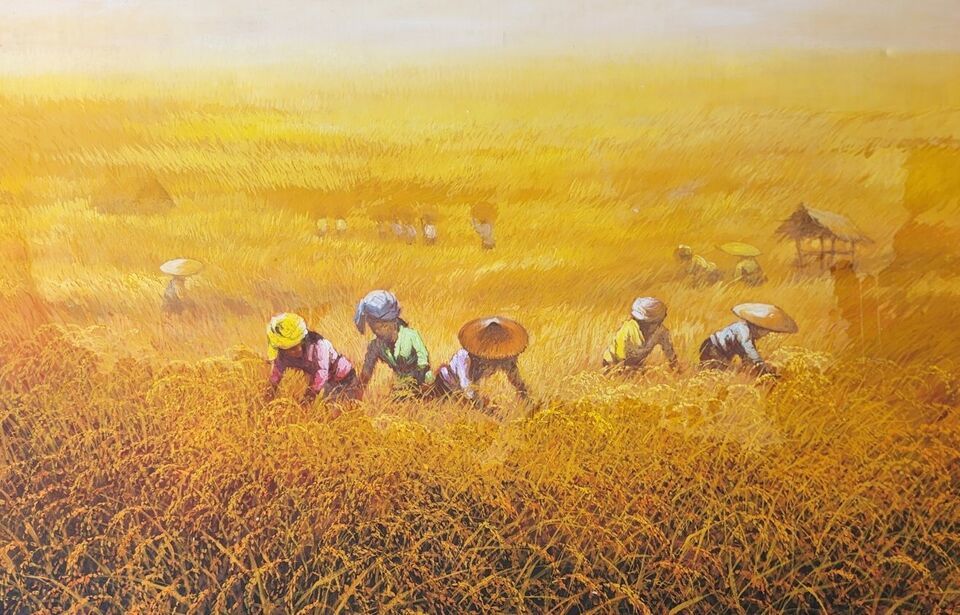 Rare Signed BANGAU SUNARTO Harvesting in the Field Indonesia Asian Art Painting