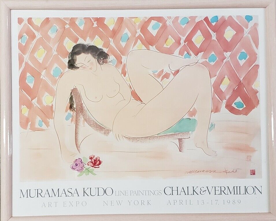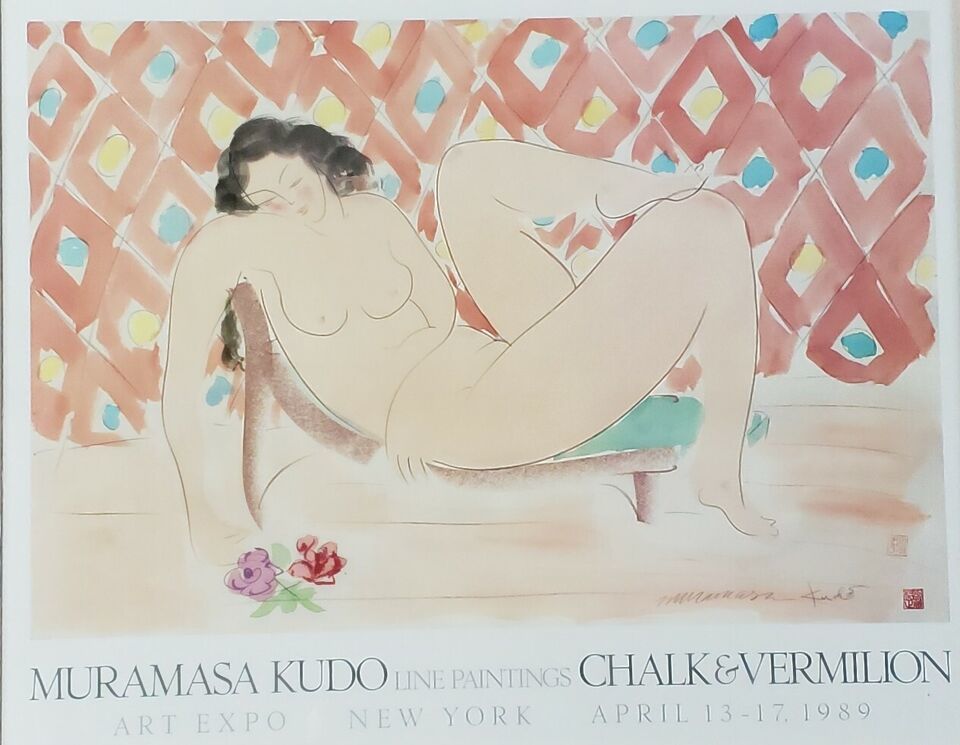 1989 Muramasa Kudo RECLINING WITH ROSES Chalk & Vermilion Art Poster Print NYC