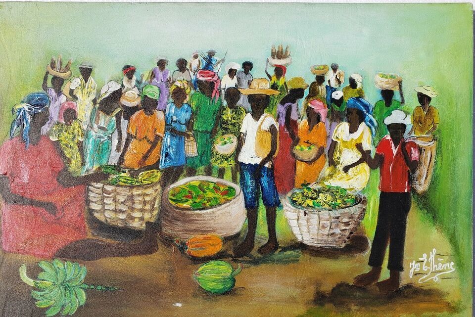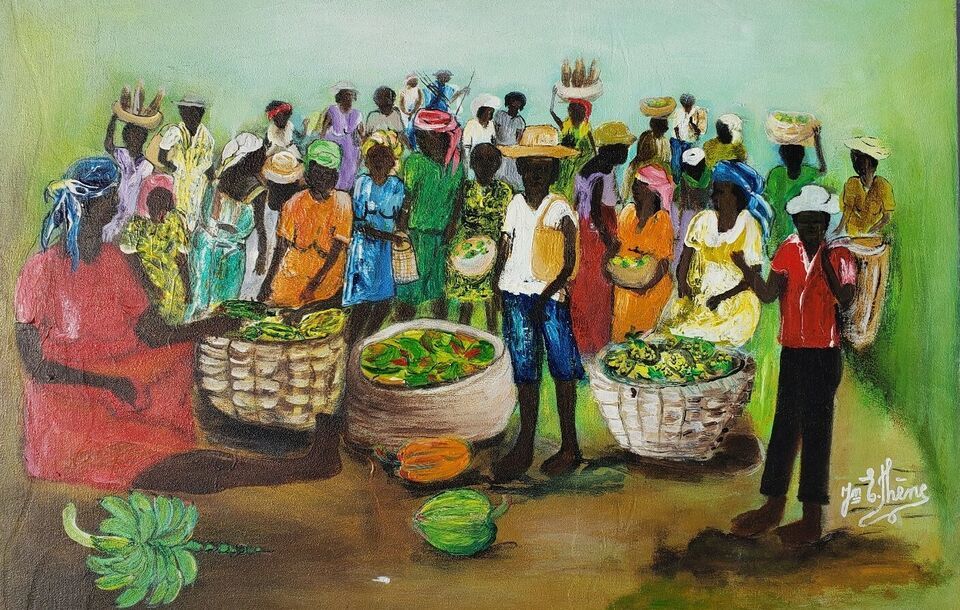 Original 1995 Signed Elisthene Jean Haitian Art Painting Haiti