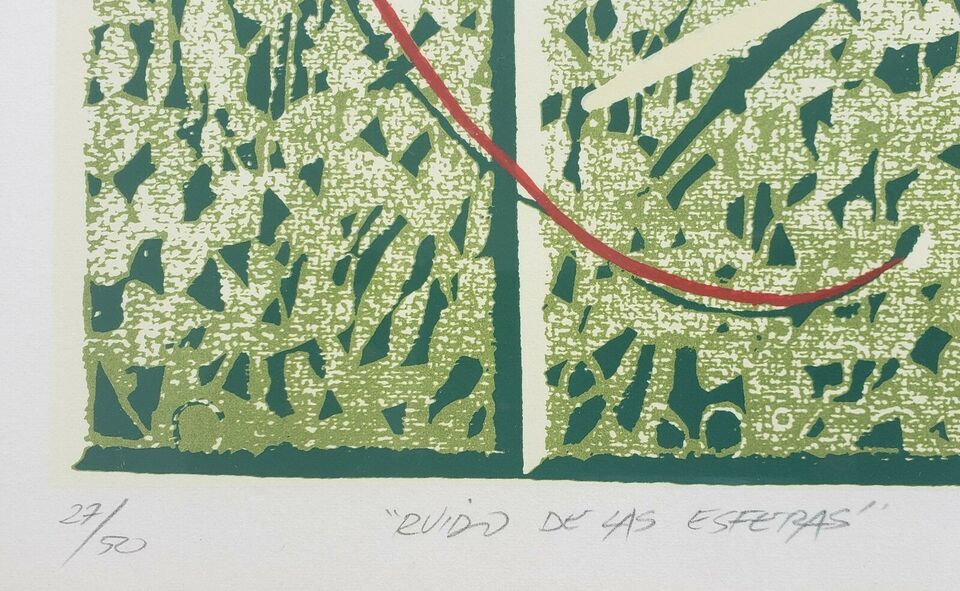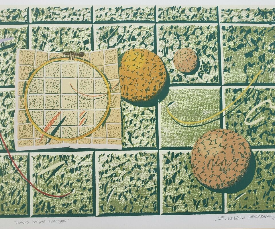 1988 Hand Signed Numbered 27/50 Edgar Alvarez Estrada - Ruido de las Esperadas - Art Print. Frame measures 29 by 23 inches. Lithographic print is framed in excellent condition as displayed in the photo gallery. A scarce piece. Shipped with FEDEX Ground, and USPS International Shipping.