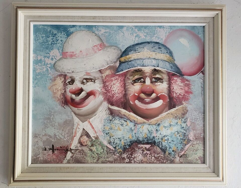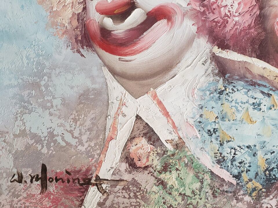 LISTED ARTIST William Moninet Vintage Art Original Oil Painting Circus Clowns.
