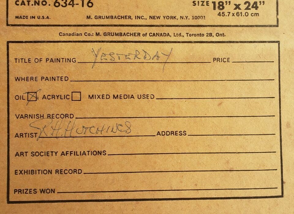 RARE Signed R.H Hutchings titled "YESTERDAY" Vintage Original Art Oil Painting on Canvas Board measures 18" by 24" inches This is a original vintage painting in good condition as displayed in the photo gallery. "Shipped via USPS or Fedex.