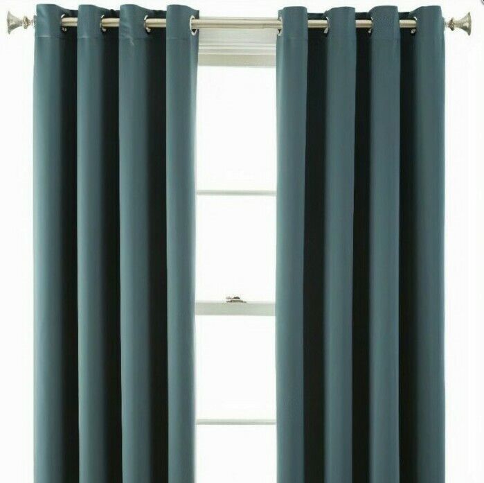 (1) JCPenney Home Kathryn TEAL GREEN Room-Darkening Grommet Curtain 50X84