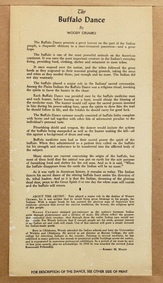 Vintage Native American Woody Crumbo The Buffalo Dance Silk Screen Art Print