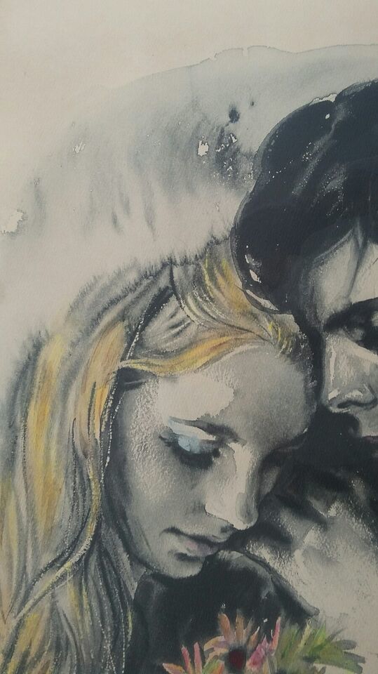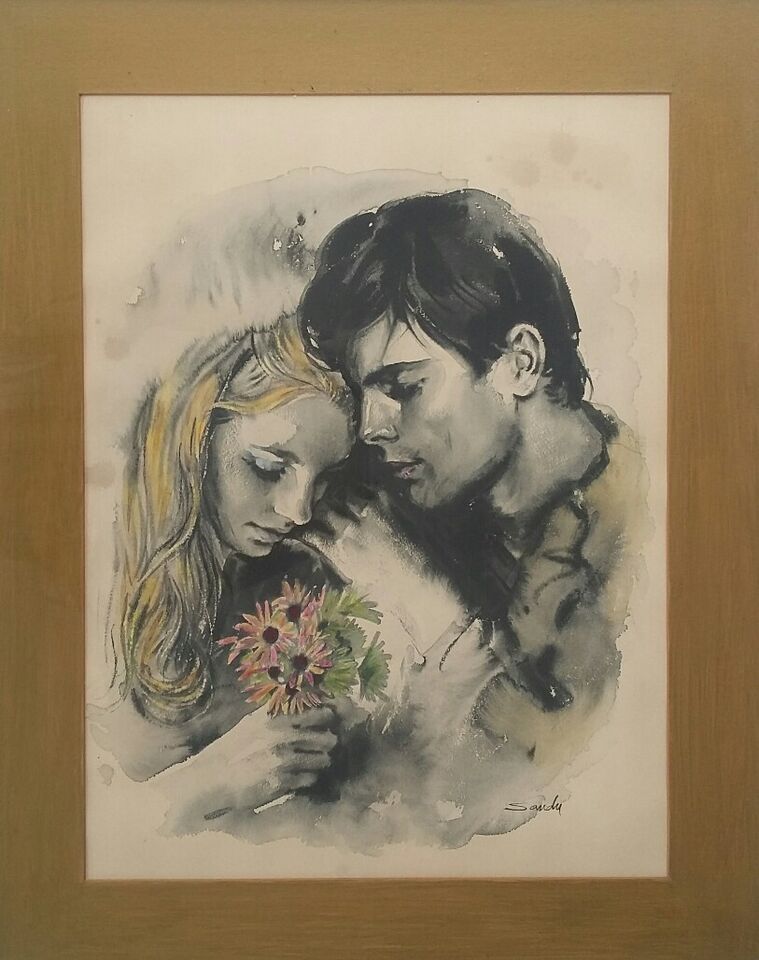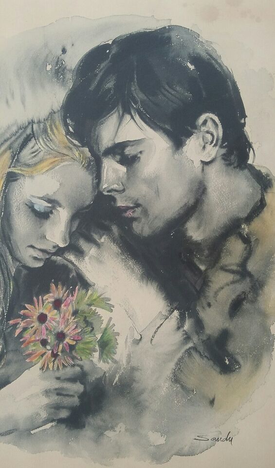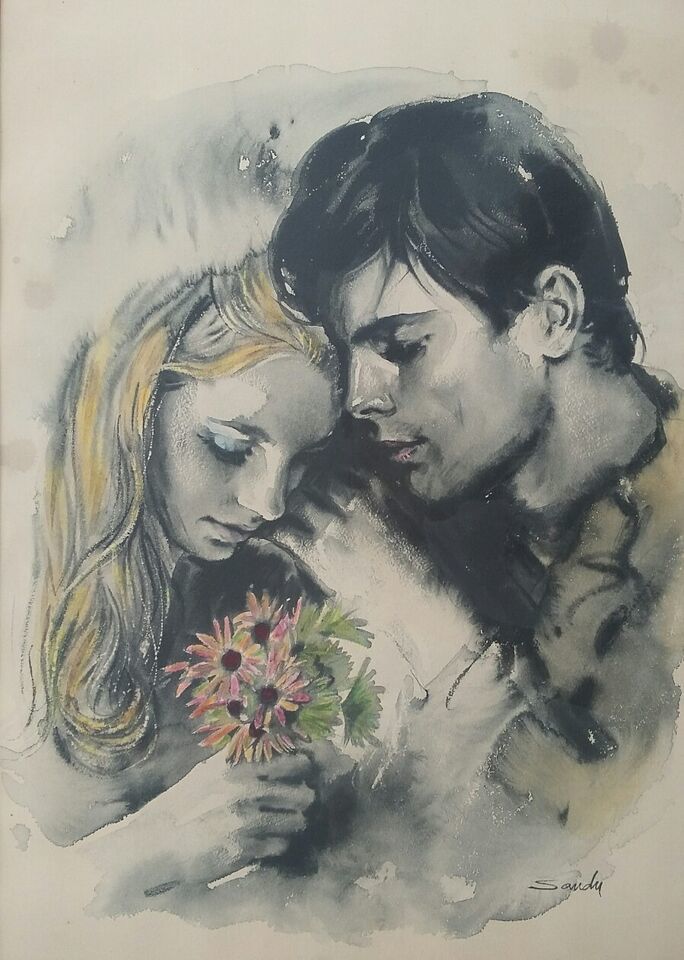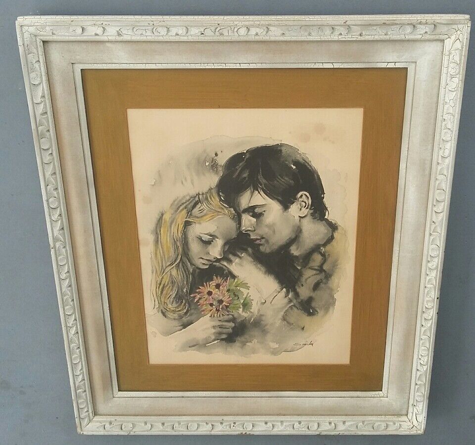 EXTREMELY RARE SANDU LIBERMAN YOUNG LOVERS WATERCOLOR LITHOGRAPHIC ART PRINT