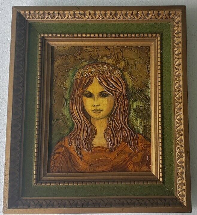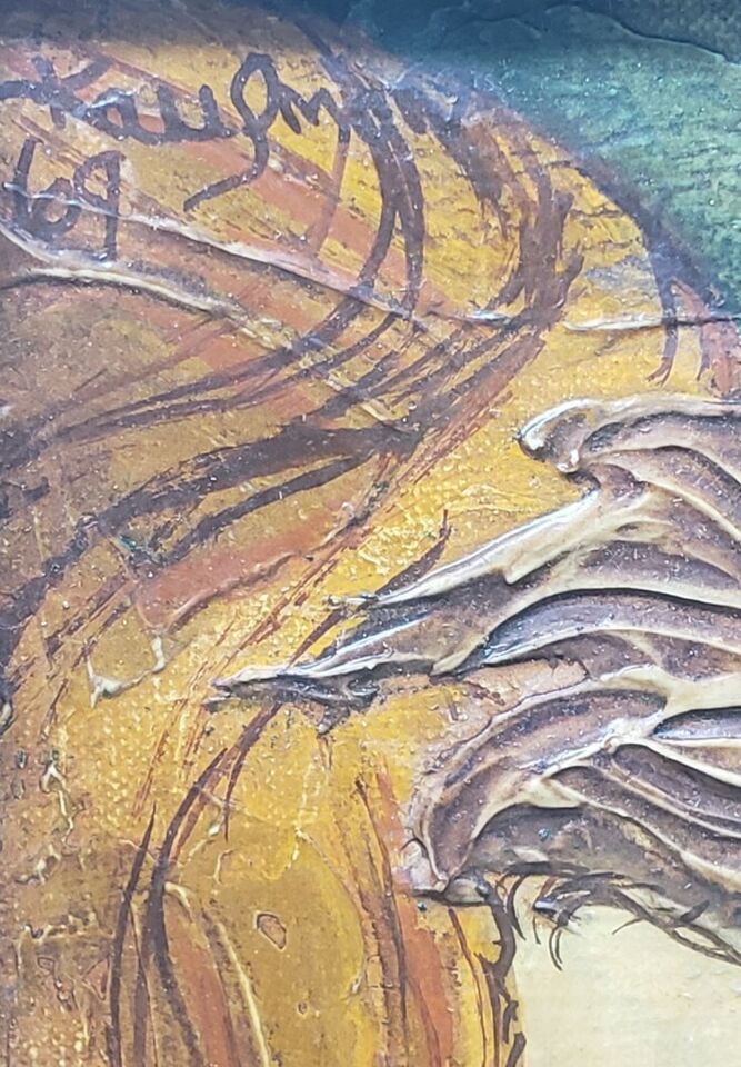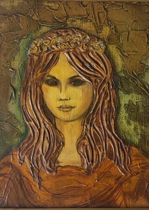 1969 Vintage & Signed KAUFMAN Portrait of a Woman Mixed Media Art Painting